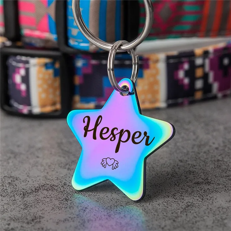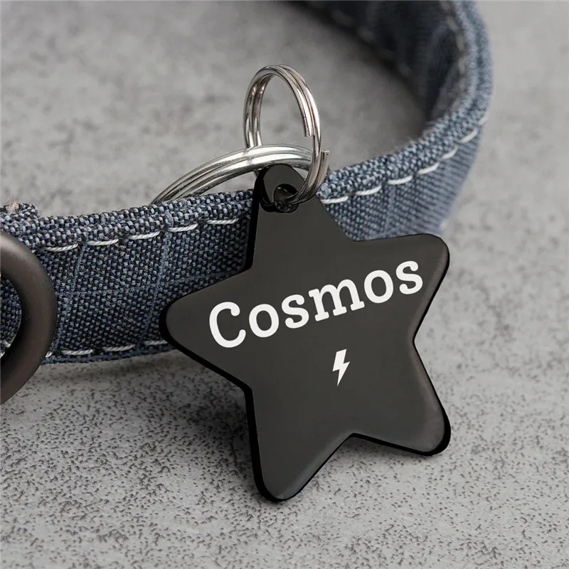 Etiquetas personalizadas para perros y gatos grabadas en ambos lados en forma de estrella, colgantes de identificación de mascotas de acero inoxidable, placa de identificación personalizada para gatitos y cachorros