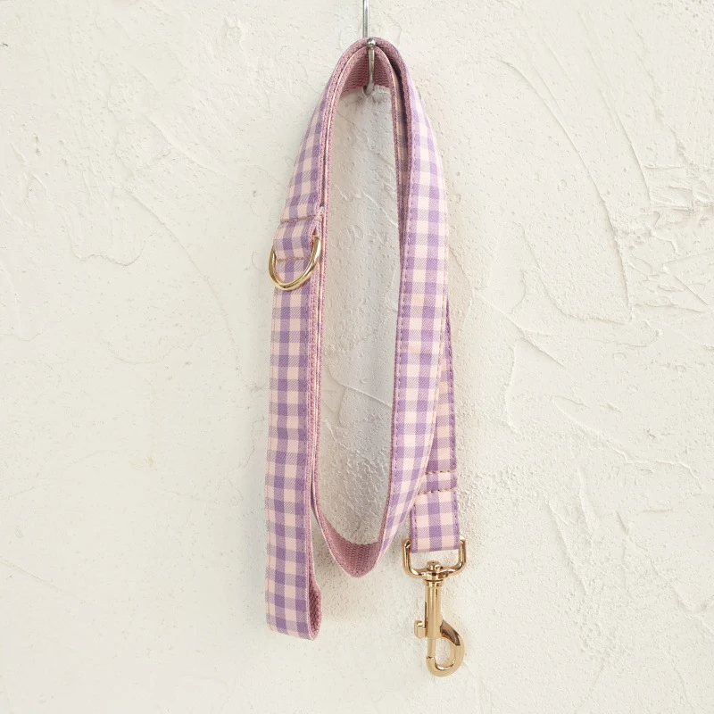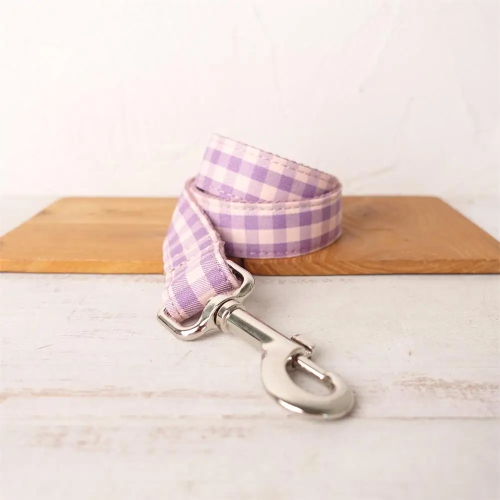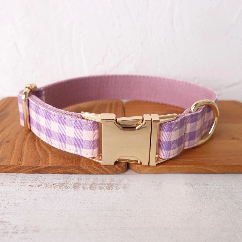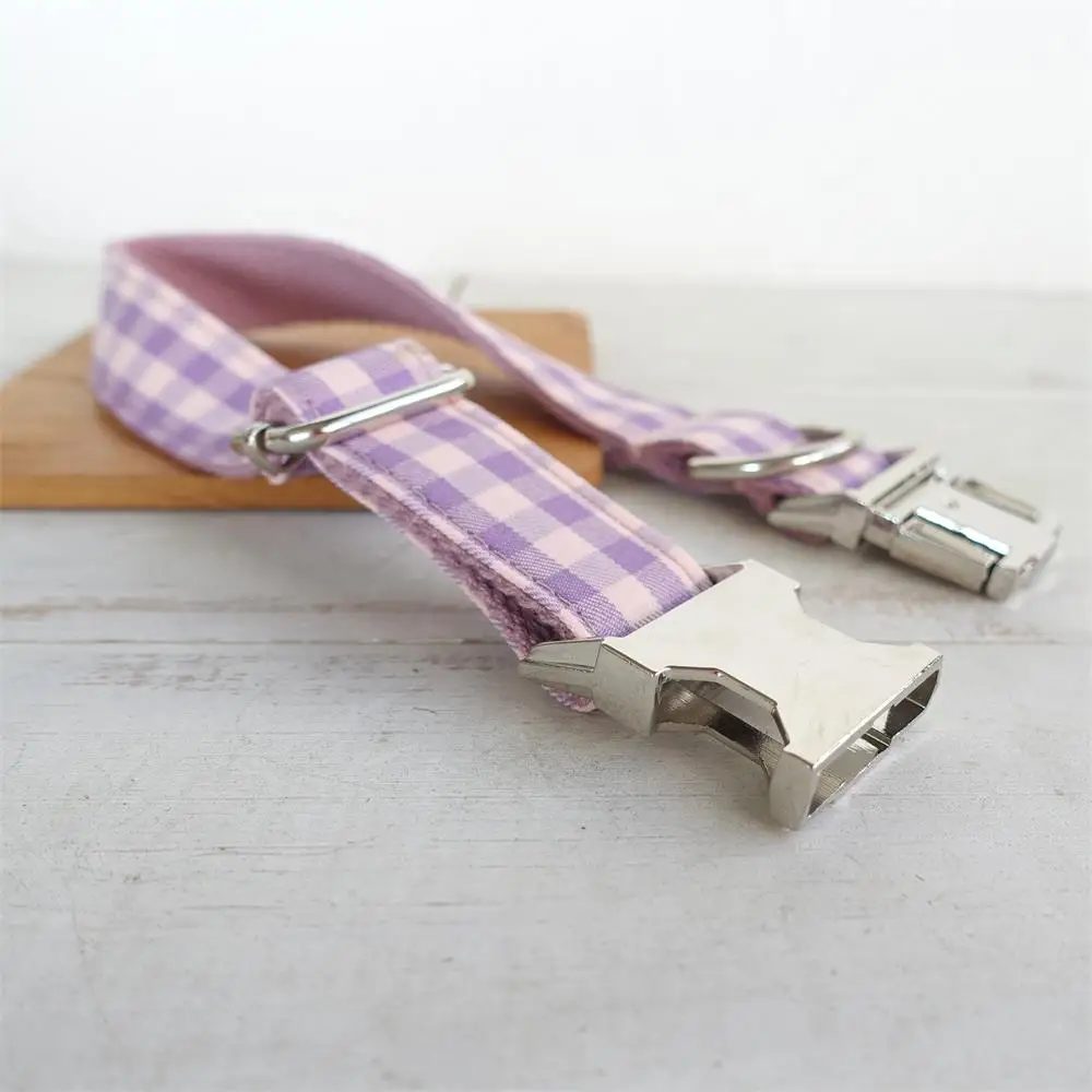 Nombre del producto: Collar personalizado para perros Collar personalizado para mascotas Grabado gratuito Etiqueta de nombre de identificación Accesorio para mascotas Pnik Conjunto de correa de collar de cachorro a cuadros púrpura
