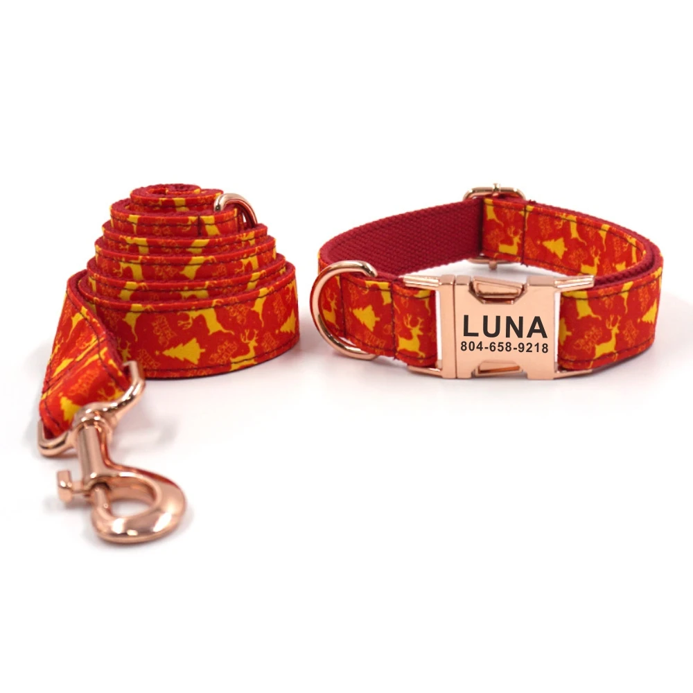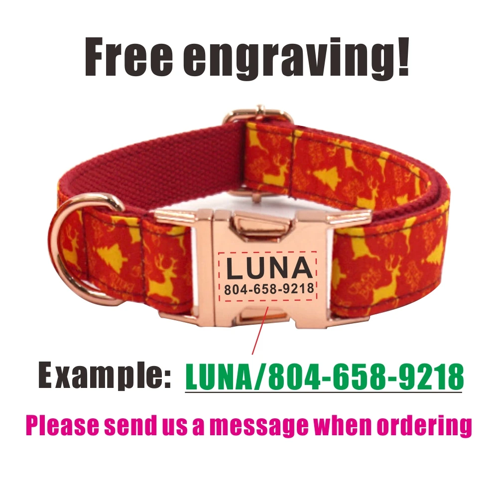 Product Name: Personalized Dog Collar Customized Pet Collars Engraving ID Name Tag Pet Accessory Christmas Deer Tree Puppy Collar Leash Set