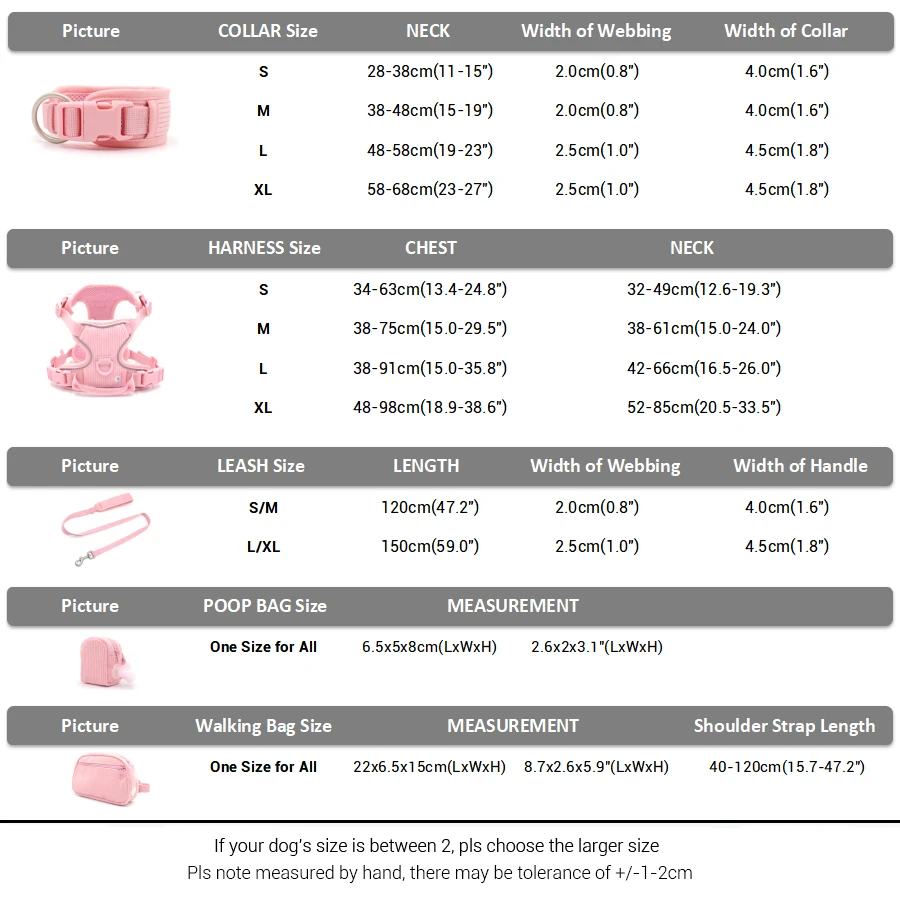 Nota: El arnés y el collar están personalizados.