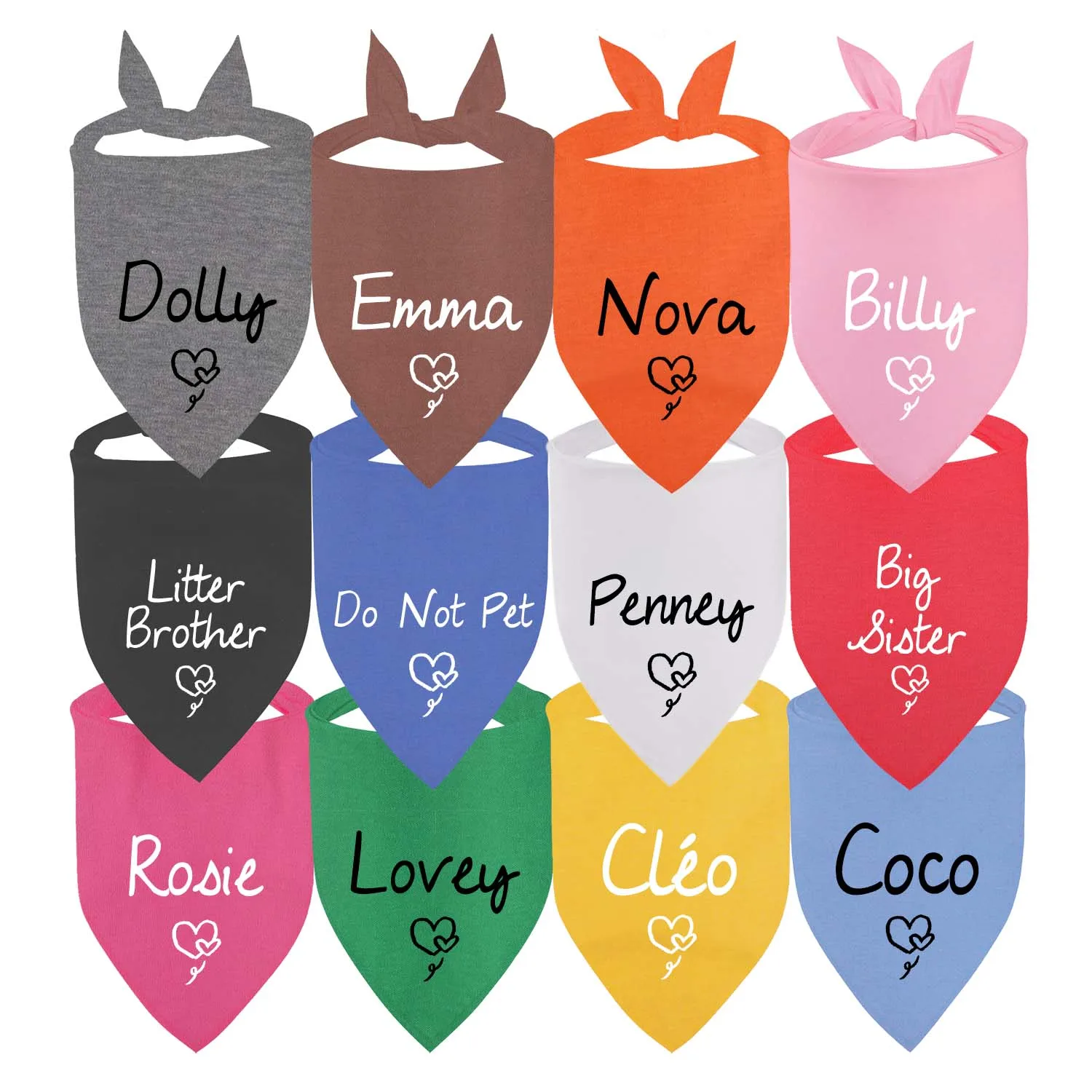 Personalized Name Dog Bandana Custom Triangular Heart Pattern Collar Pet Triangular Bib Scarf for Cat, Puppy Accessories