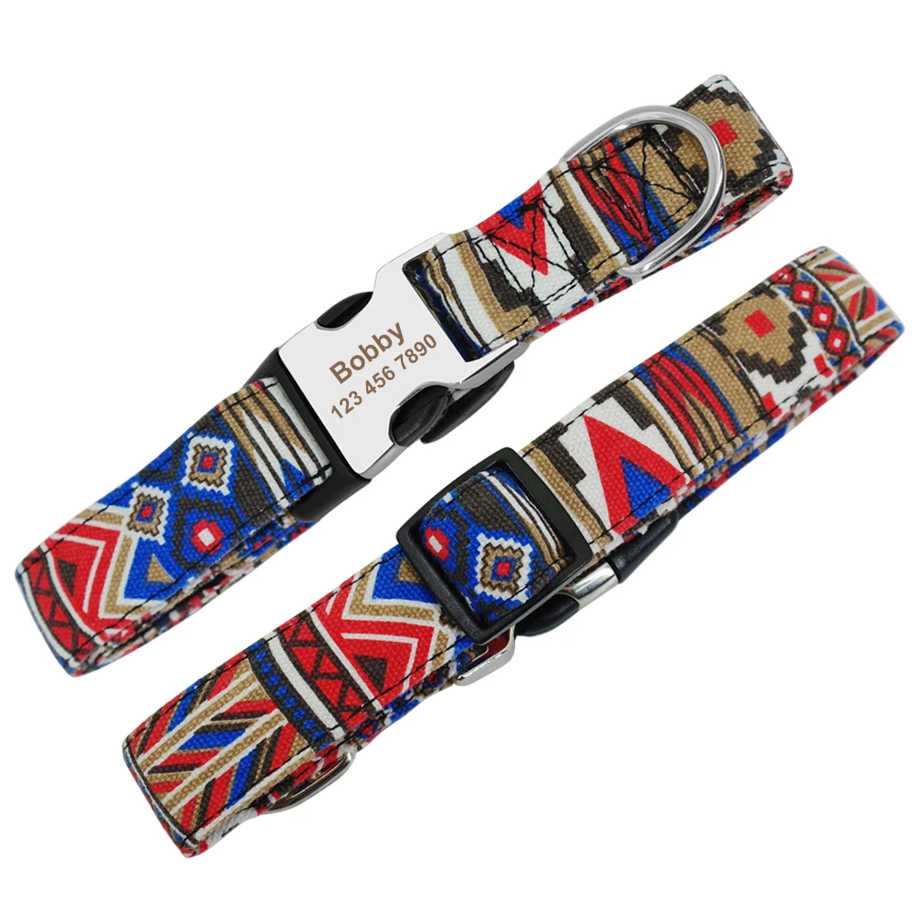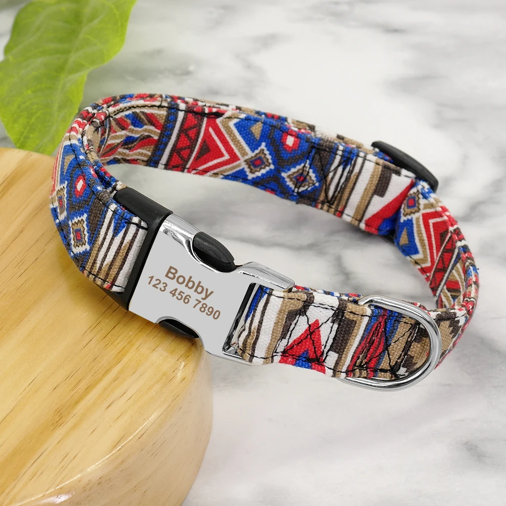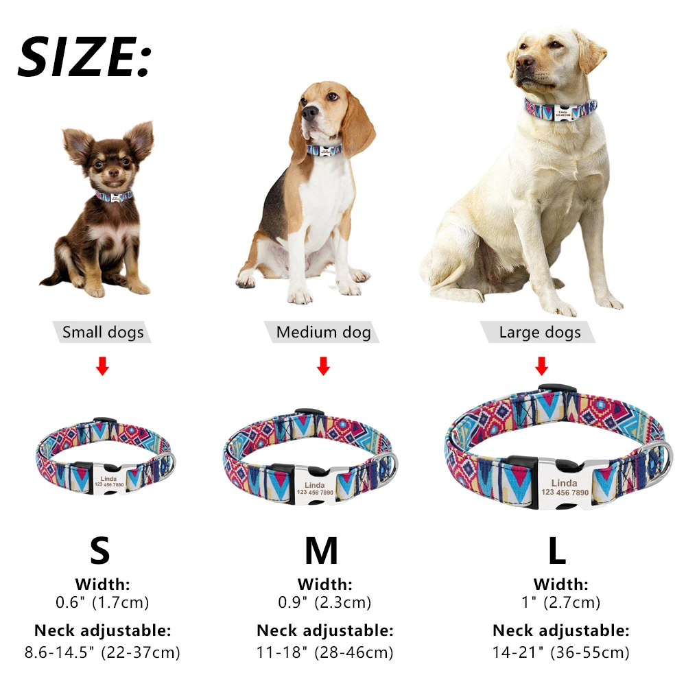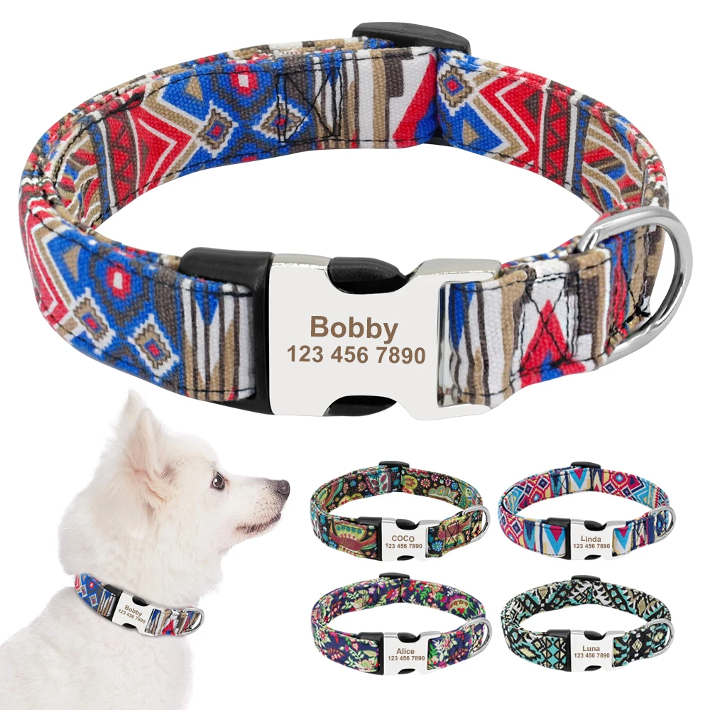 Collar de nailon personalizado para perro, collares para perro con estampado de flores, collares de identificación personalizados con nombre de mascota para perro pequeño, mediano y grande, Chihuahua