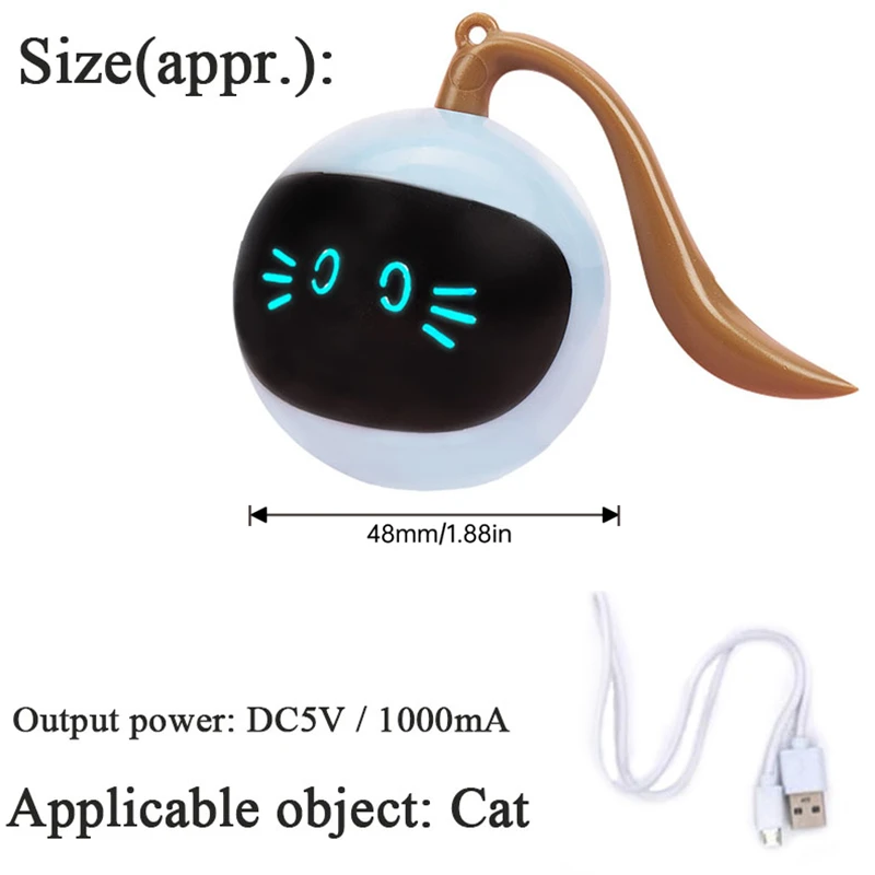 360° Rotating Ball: After power up, the interactive cat toy will start 360° rotation and colorful LED indicators.