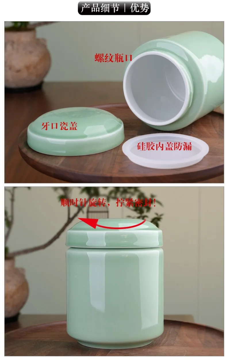 大口径陶瓷密封罐硅胶盖防漏储物罐
