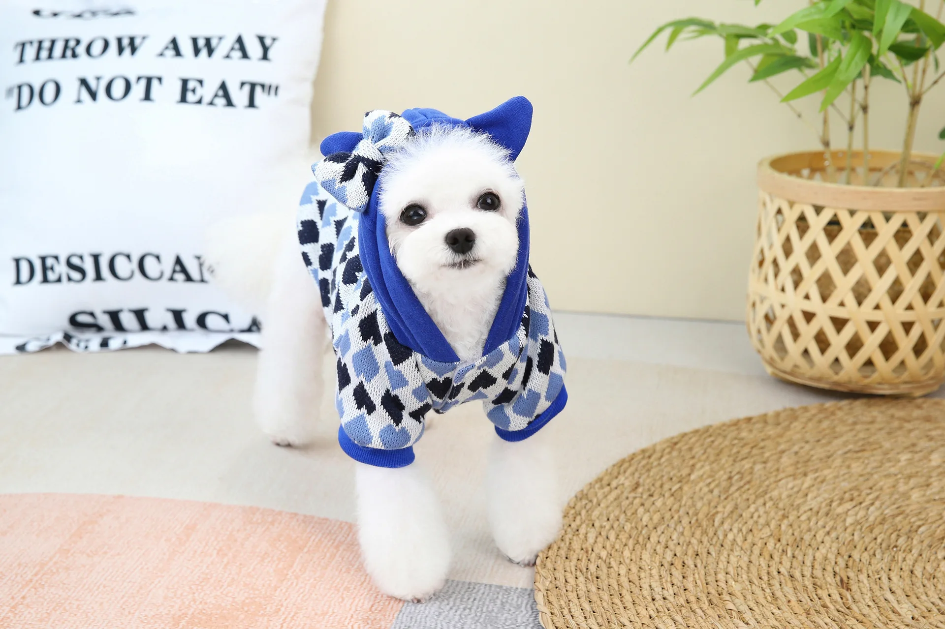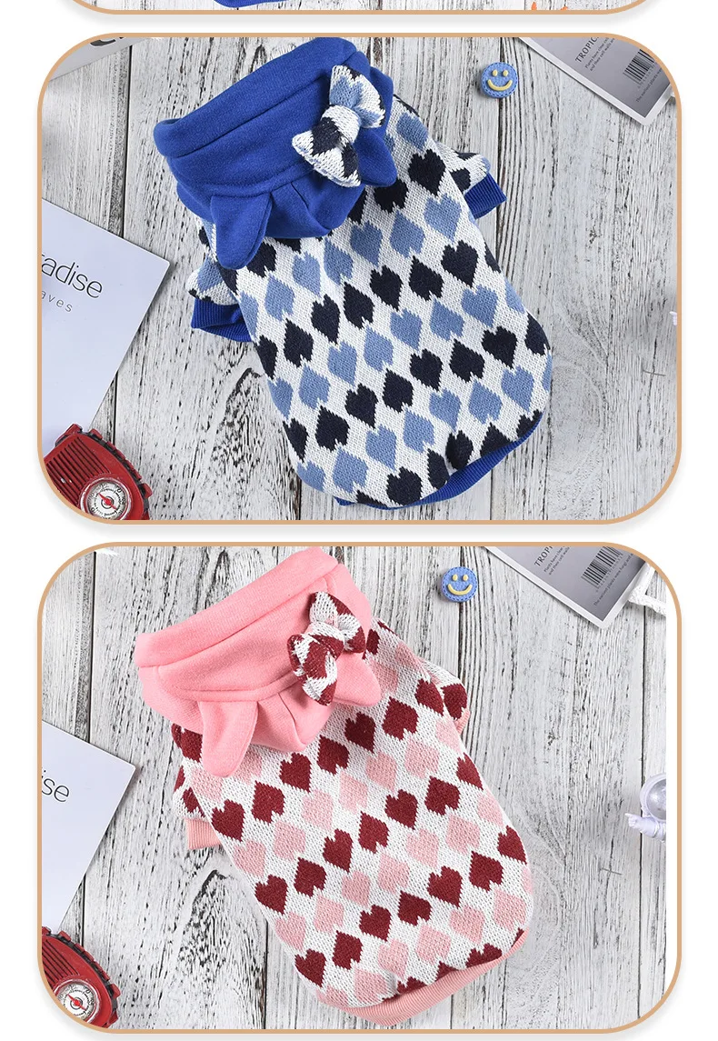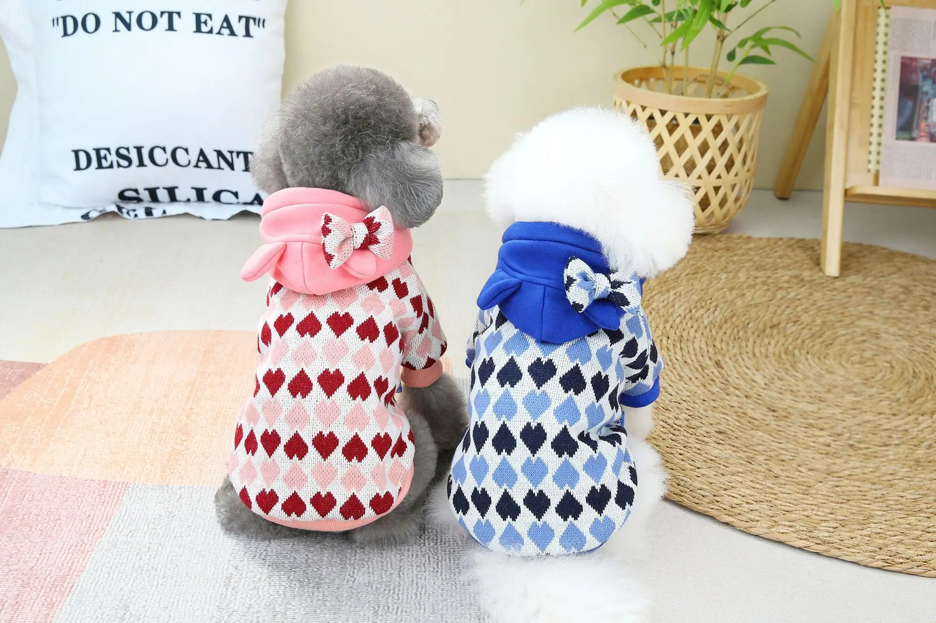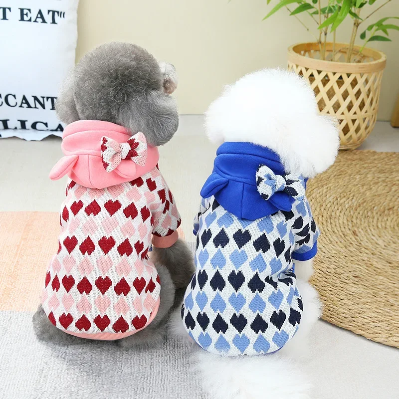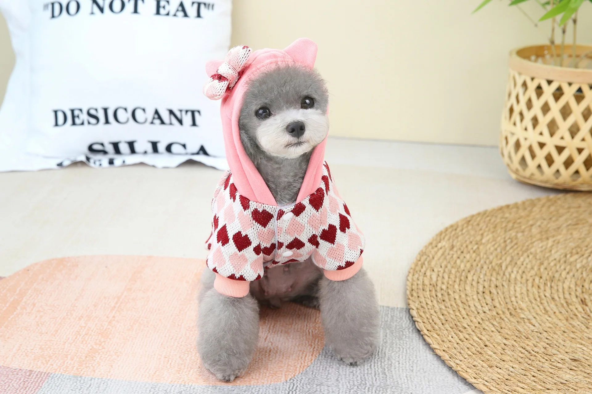 Pet Autumn/Winter Sweet Love Knitted Coat Dog Hoodie Compared To Bear Teddy Small and Medium Sized Dog Thick Pet Clothes