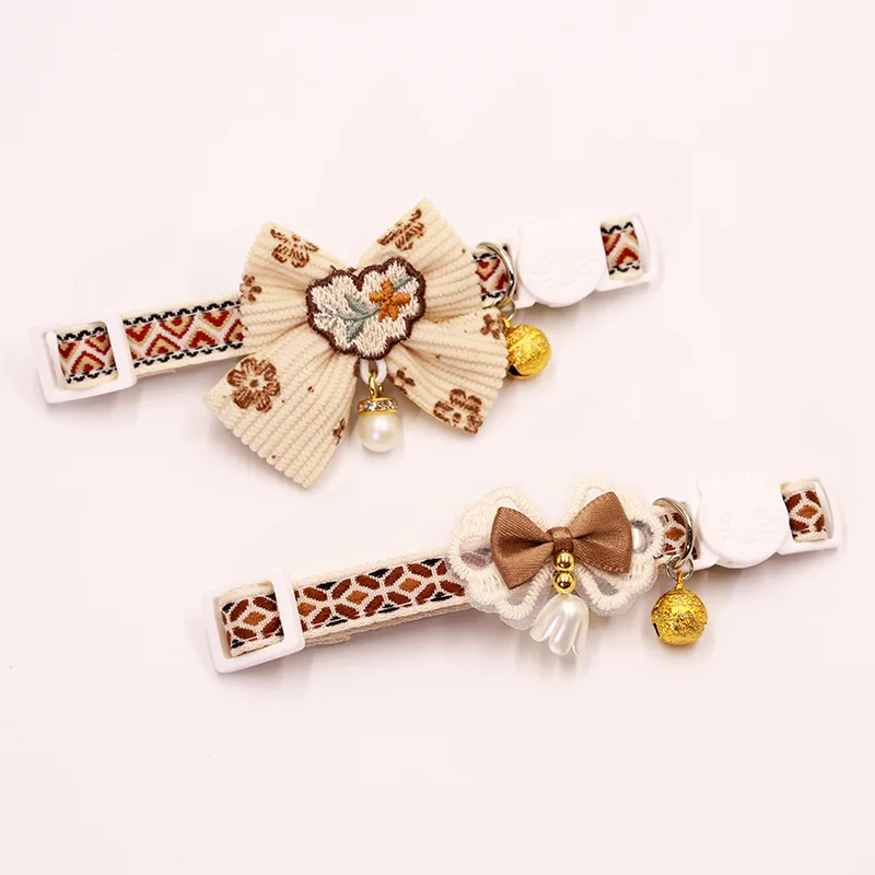 Pet Brown Bow Tie Flower Embroidery Collar Small Dog Cat Lace Bow Necklace Cute Pet Scarf Decoration Photo Products Accessories