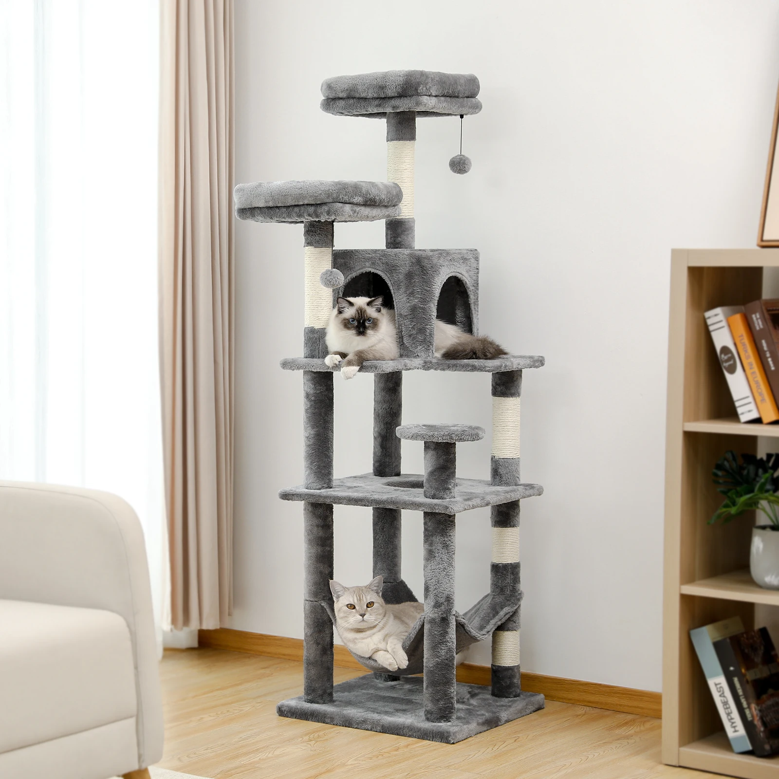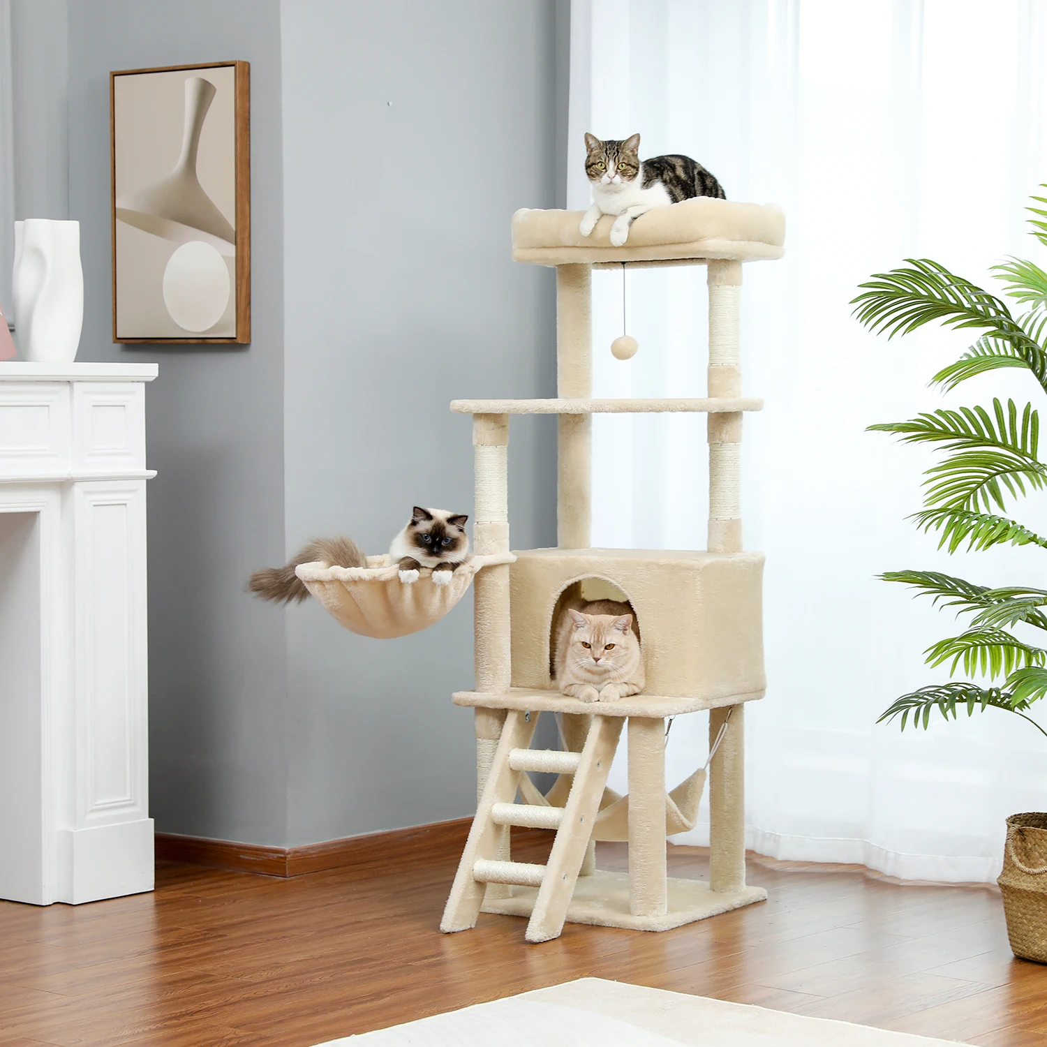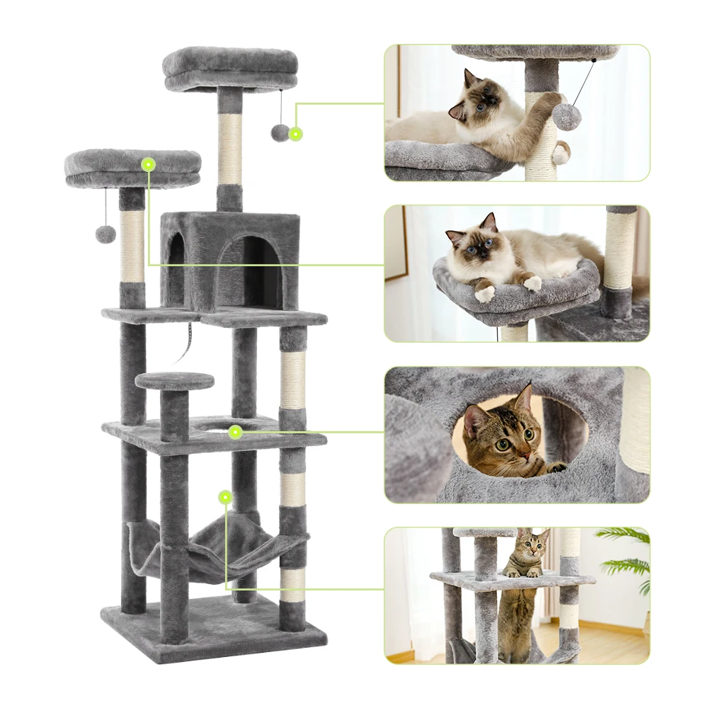 Casa de árbol para entretenimiento de gatos domésticos, muebles estables para gatitos con torre de varios niveles para animales grandes, acogedores y tipo parque infantil