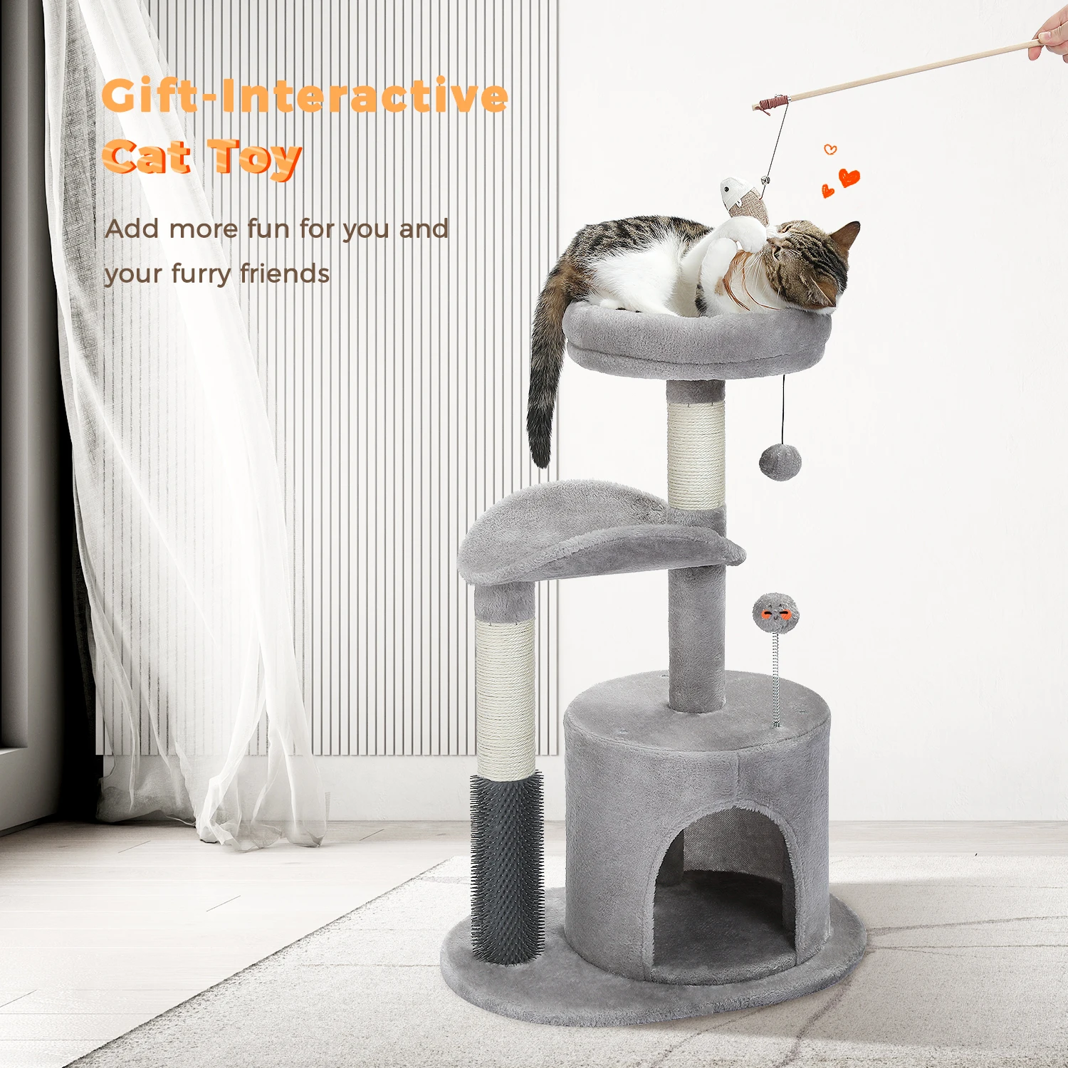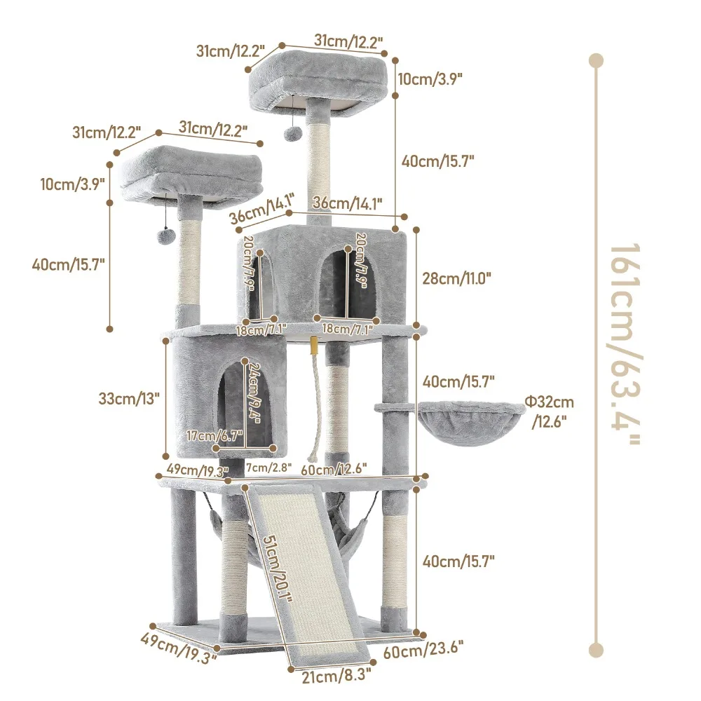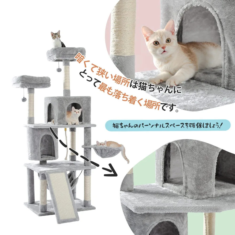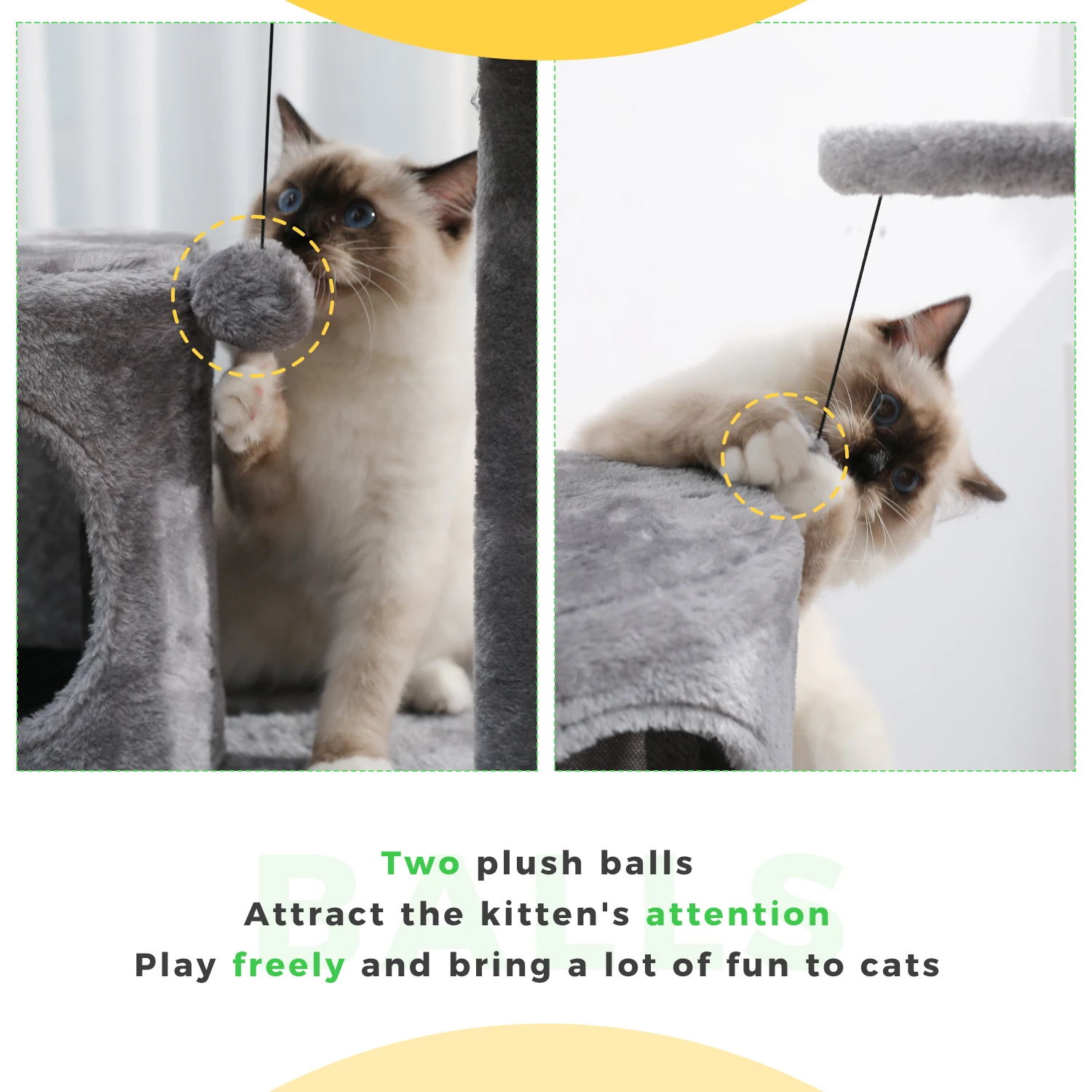 Casa de árbol para entretenimiento de gatos domésticos, muebles estables para gatitos con torre de varios niveles para animales grandes, acogedores y tipo parque infantil