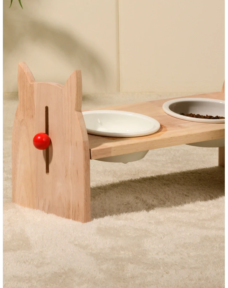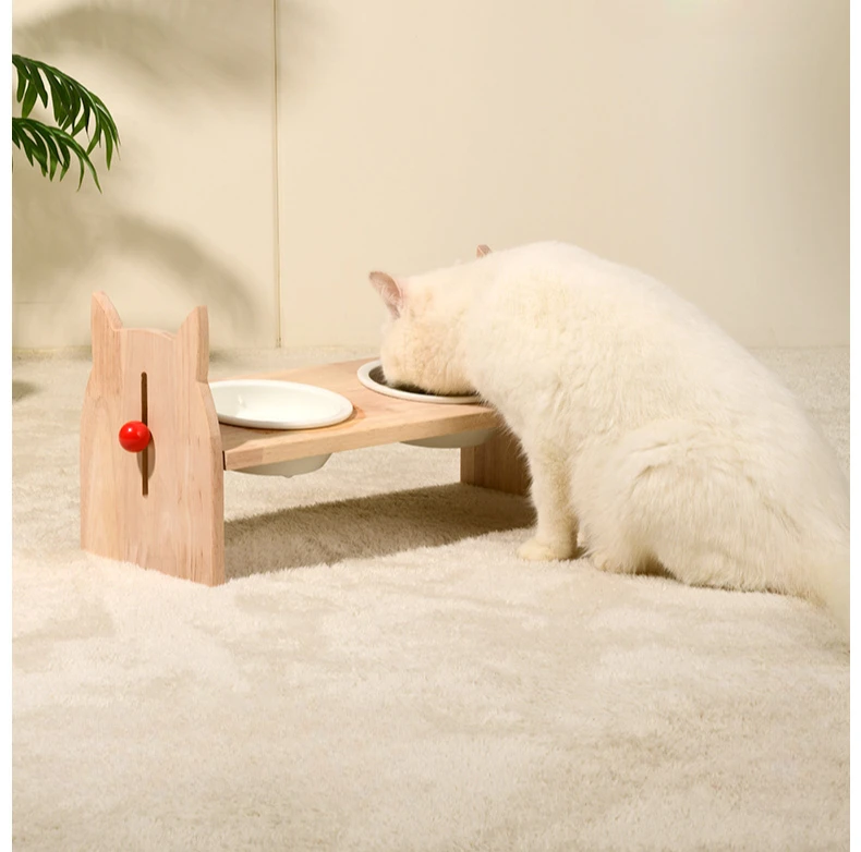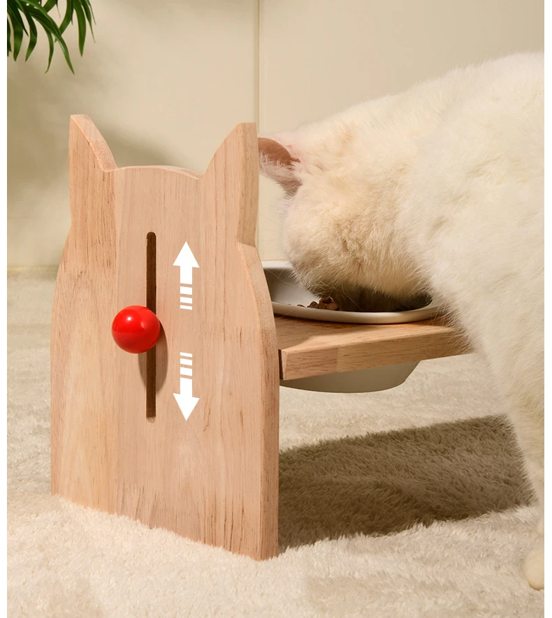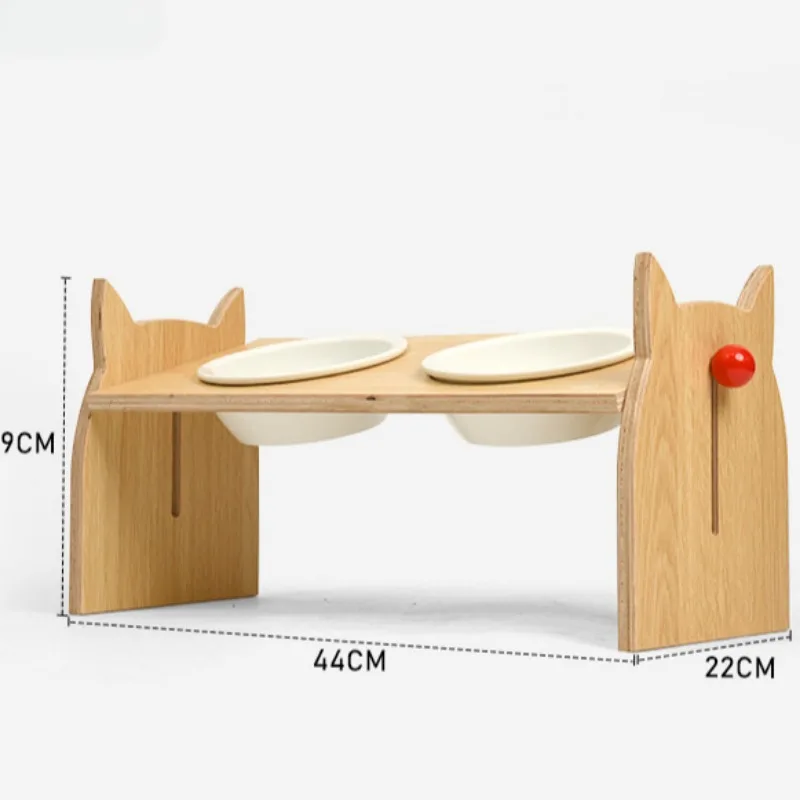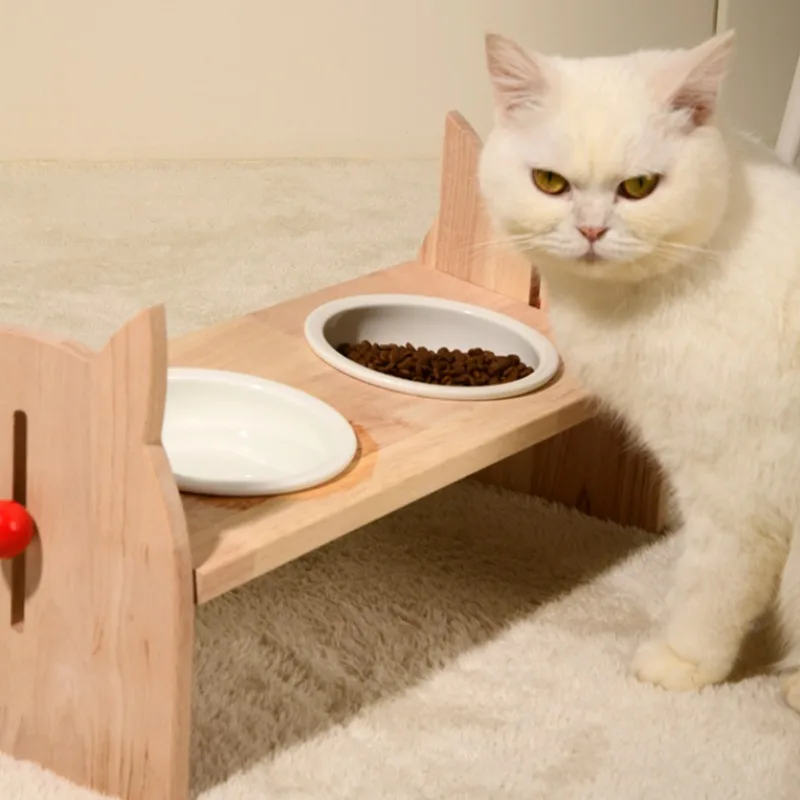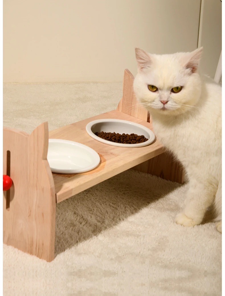Pet Ceramics Feeding Bowls Height Angle Adjustable Wood Bracket Cat Water Dispenser Dogs Feeder Home Kitten Puppy Food Container