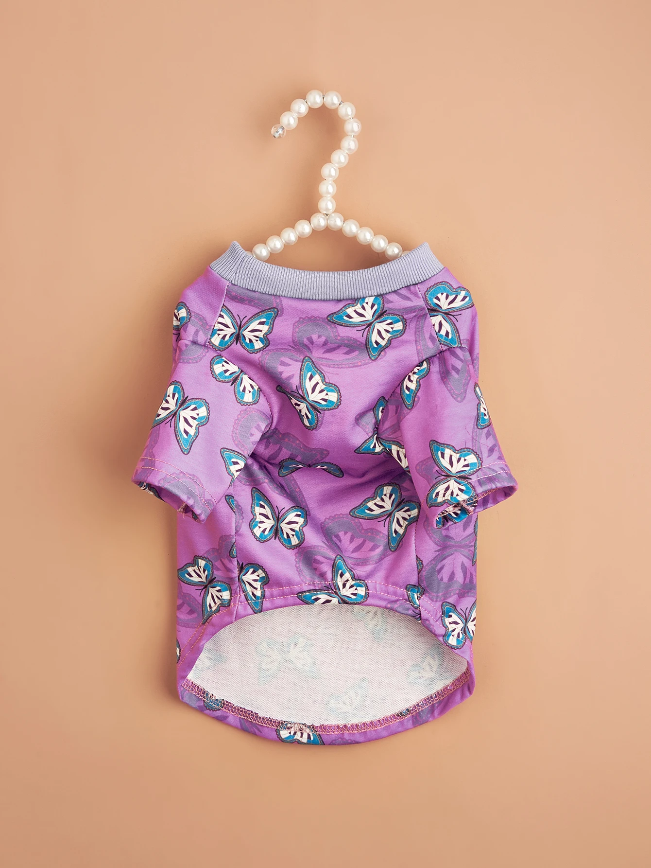 Pet Cloth Dog T-shirt with Colorful Butterflys Pattern Printed Clothes for Puppy Dog Cat Comfortable Apparel Costume
