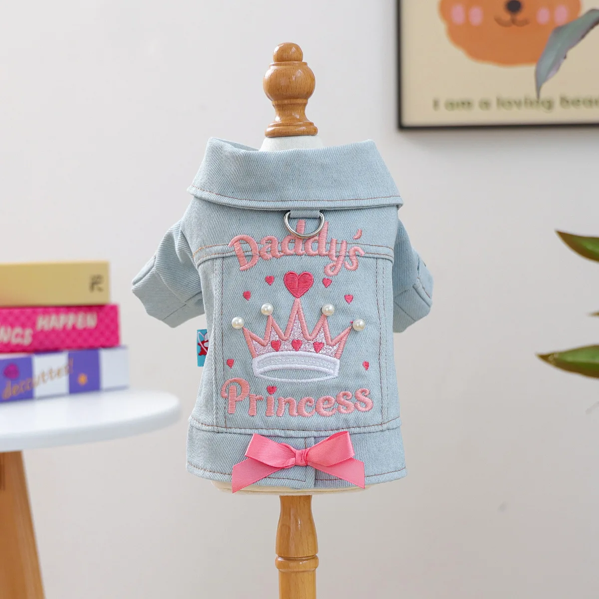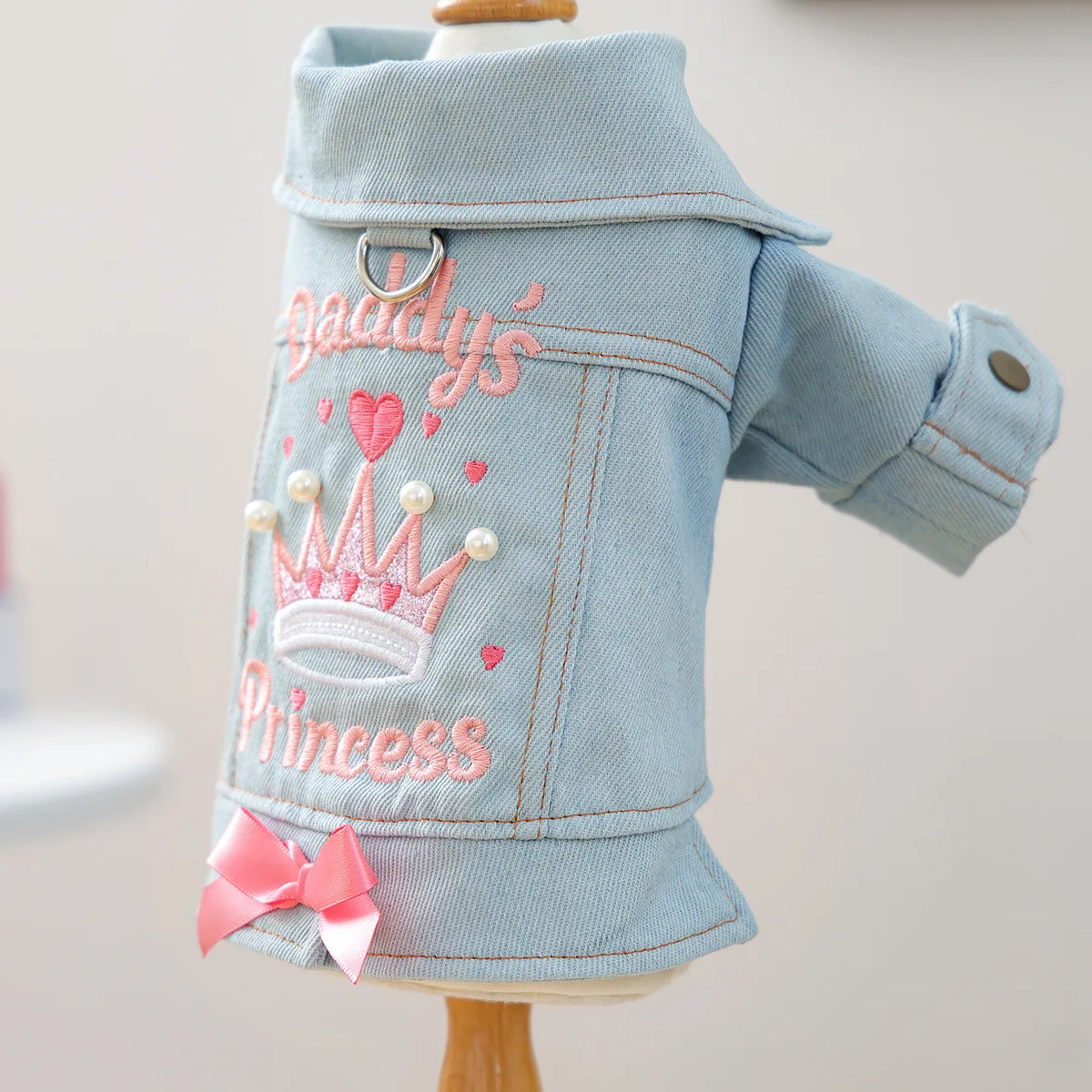 Pet Denim bordado Otoño e Invierno nuevo perro pequeño y gato cálido y cómodo pequeña princesa chaqueta vaquera ropa para cachorros