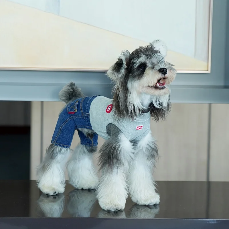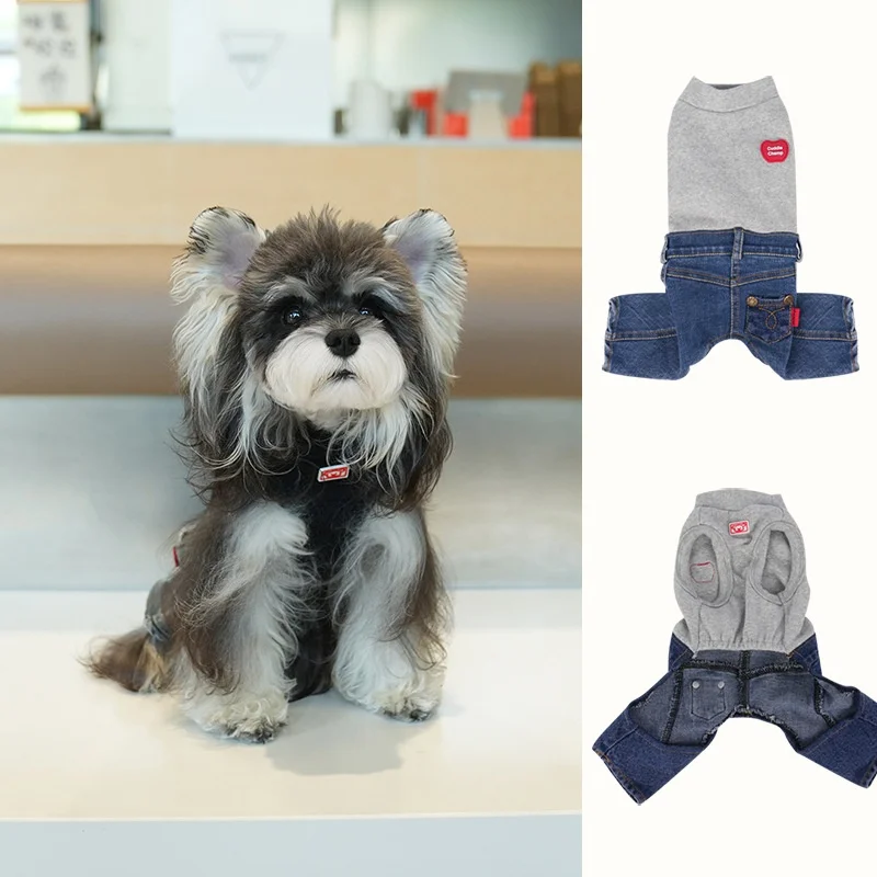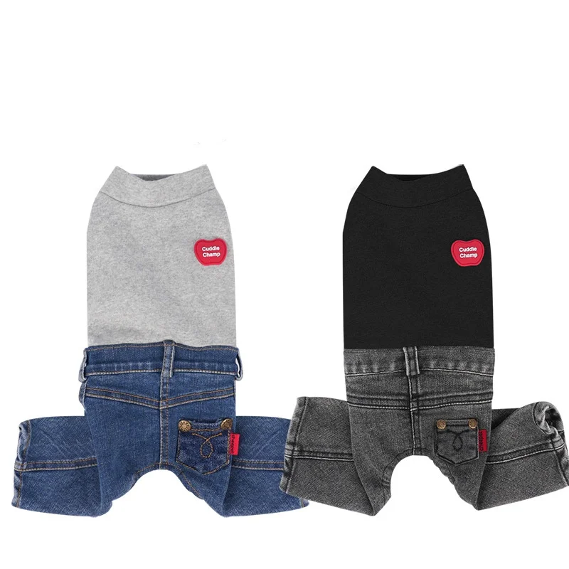 Pet dog denim jumpsuit pullover dog clothes for winter pet overalls dog 4 Legs Onesies T-Shirt dog clothing for cold weather