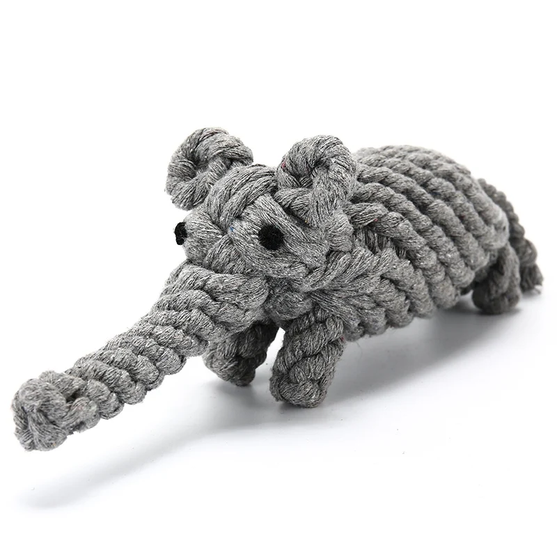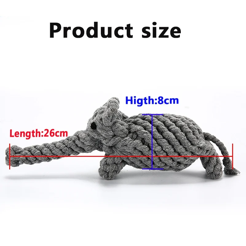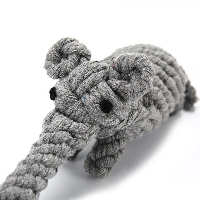 Juguetes para mascotas para limpieza de dientes, Molar mordedura, juguetes interactivos para perros, forma de elefante encantadora, cuerdas de algodón trenzadas hechas a mano, juguetes TY0044