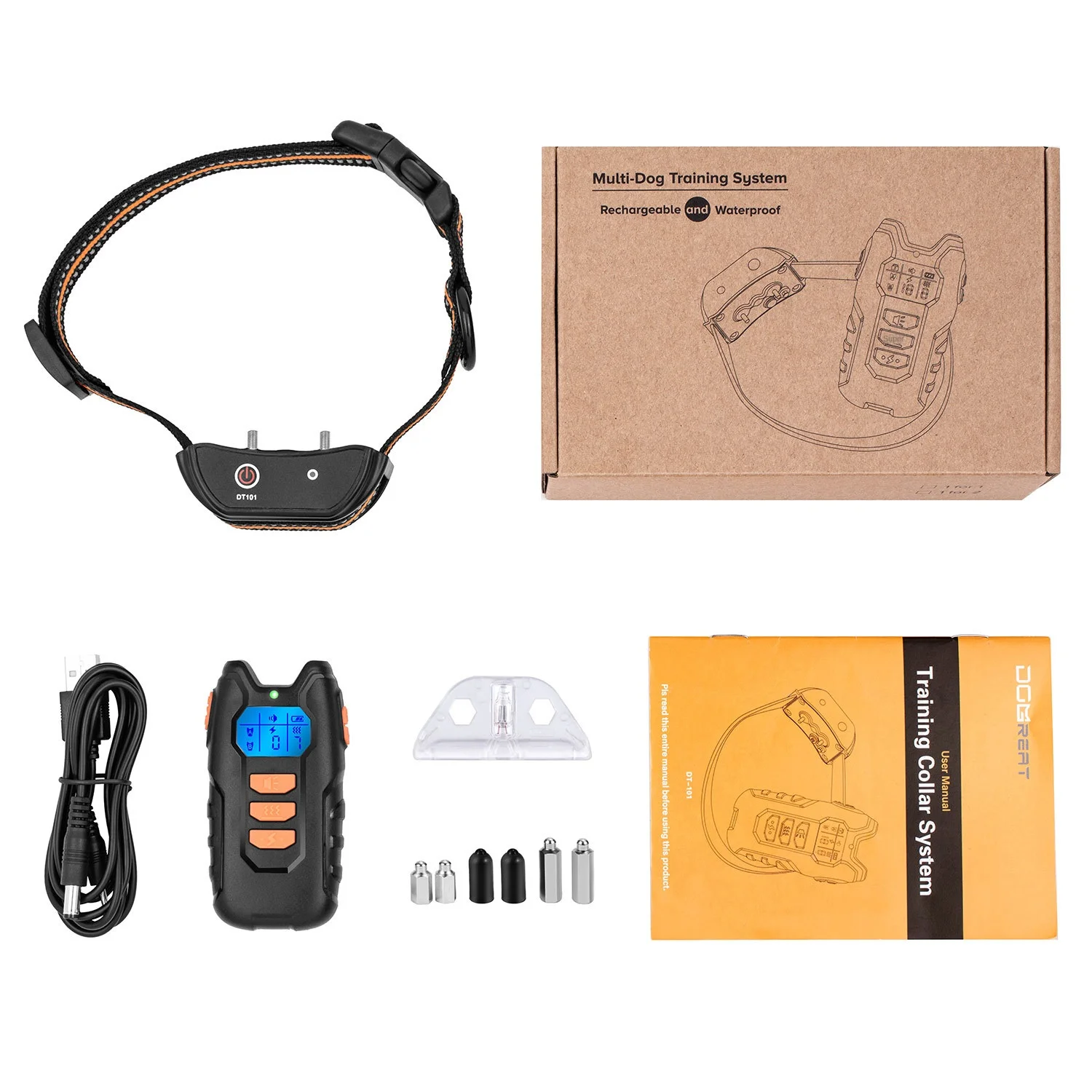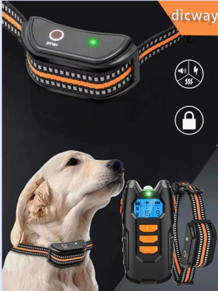 Collar para entrenamiento de perros a prueba de ladridos con pantalla LCD de entrenador de Control remoto, vibrador de sonido eléctrico de choque resistente al agua recargable
