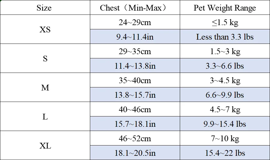 Rango de peso para mascotas
