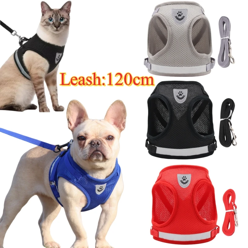 Conjunto de arnés y correa de chaleco para perros, arnés de malla ajustable para perros, suministros para gatos, arnés de correa para cachorros, Bulldog Corgi, accesorios para perros