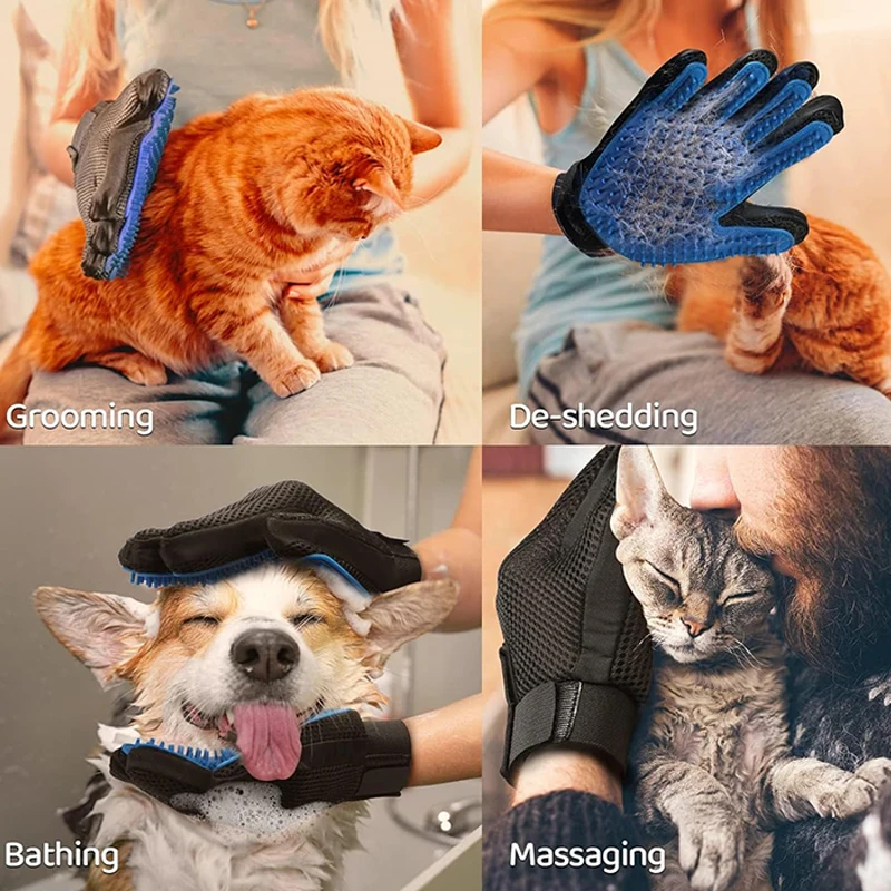 Guantes de aseo para mascotas, cepillo de pelo de silicona para gatos y guantes de peine para bañar, limpieza de perros, depilación para perros, suministros de uso de animales