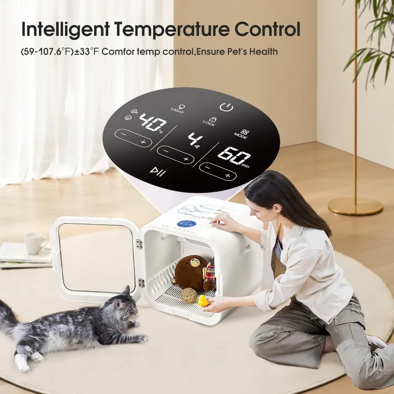 Pet marvel Automático Ultra Silencioso 62L Caja Secadora para Perros de Gran Capacidad Jaula Secadora para Gatos con Control Inteligente de Temperatura, 360 ° Caja secadora para mascotas