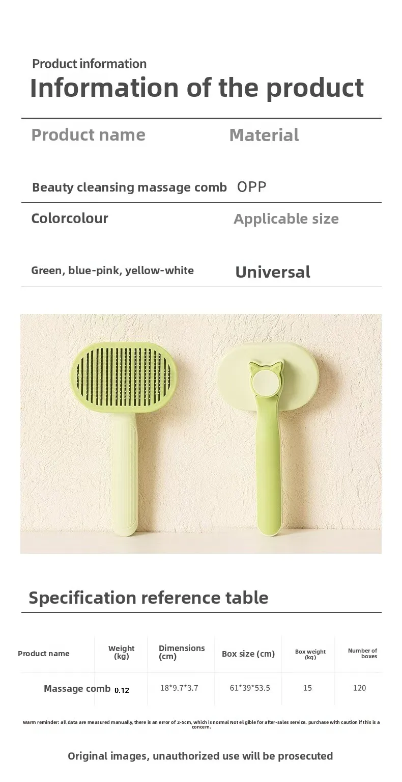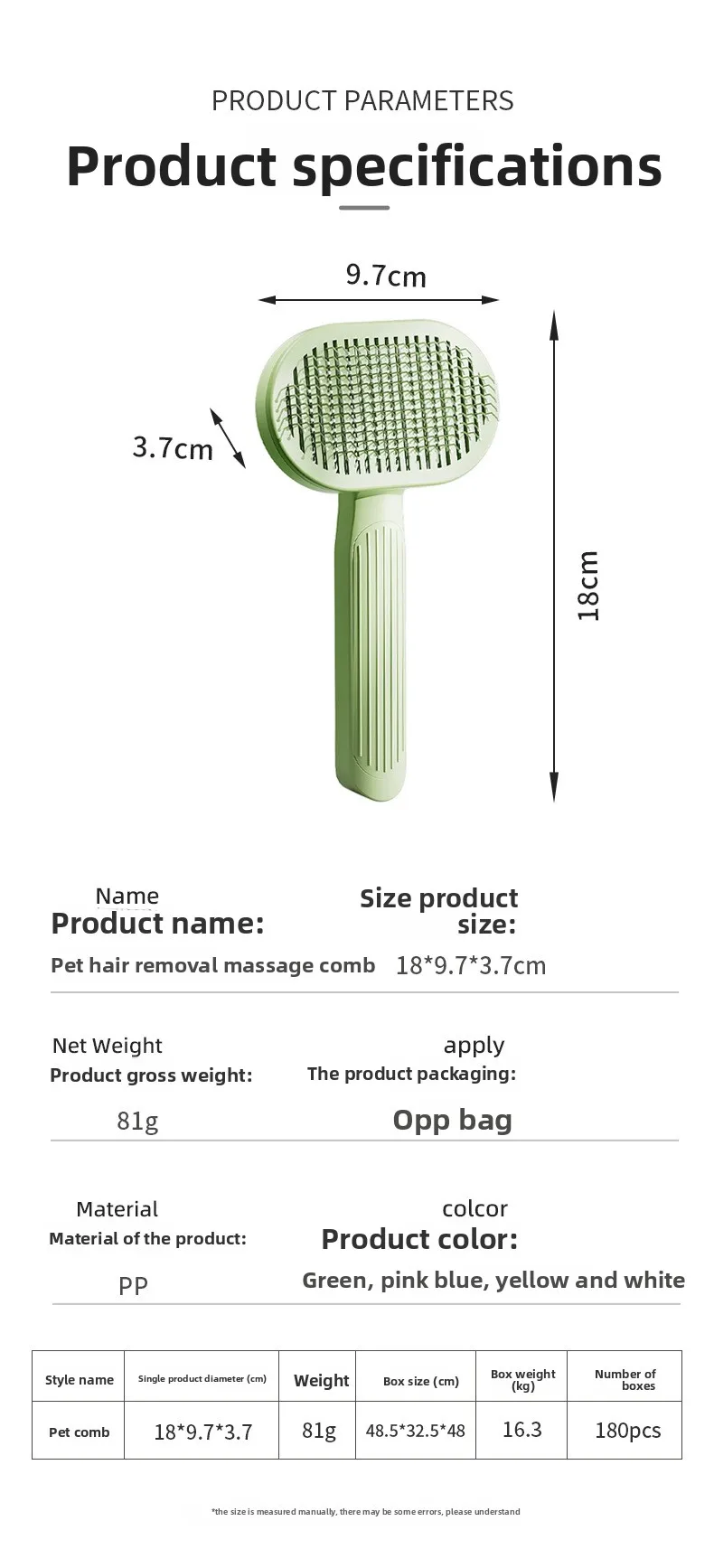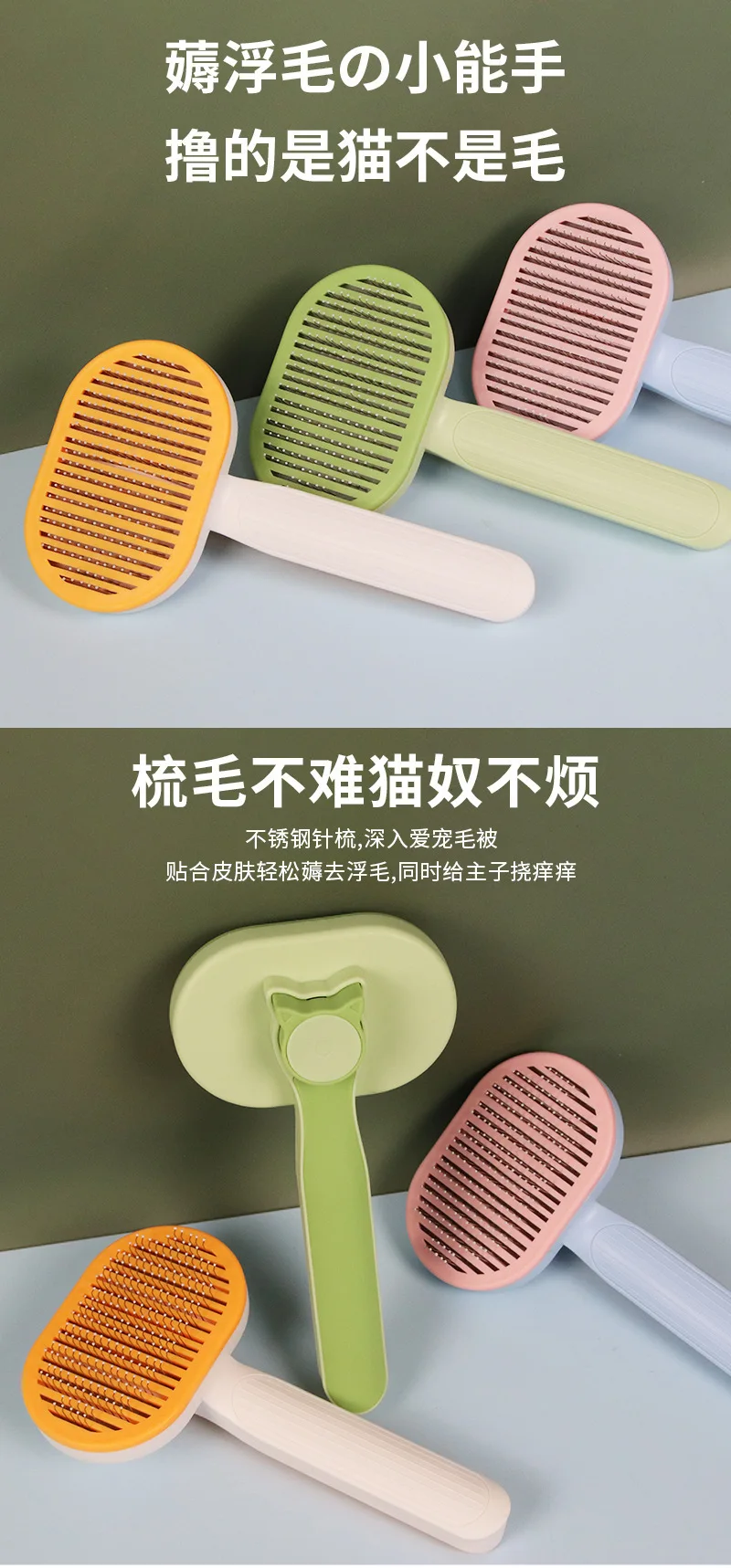 Pet Massage Comb Cats and Dogs Open Knots To Remove Floating Hair Stainless Steel Needle Comb One-click Hair Removal Comb
