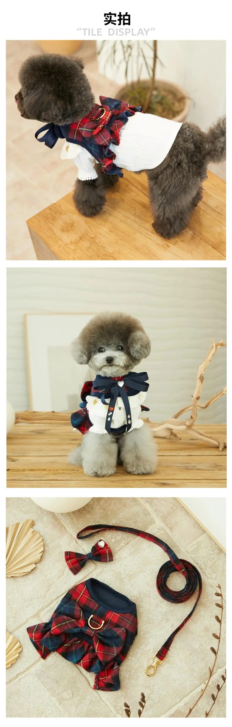 Pet Navidad Año nuevo mascota a cuadros perro correa para el pecho tirar cuerda caminar perro gato ropa chaleco tirar cuerda sombreros - imagen 4