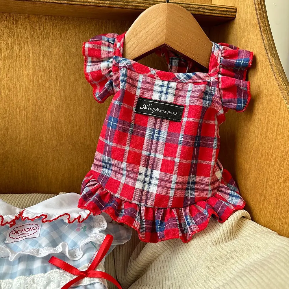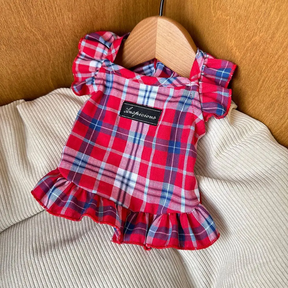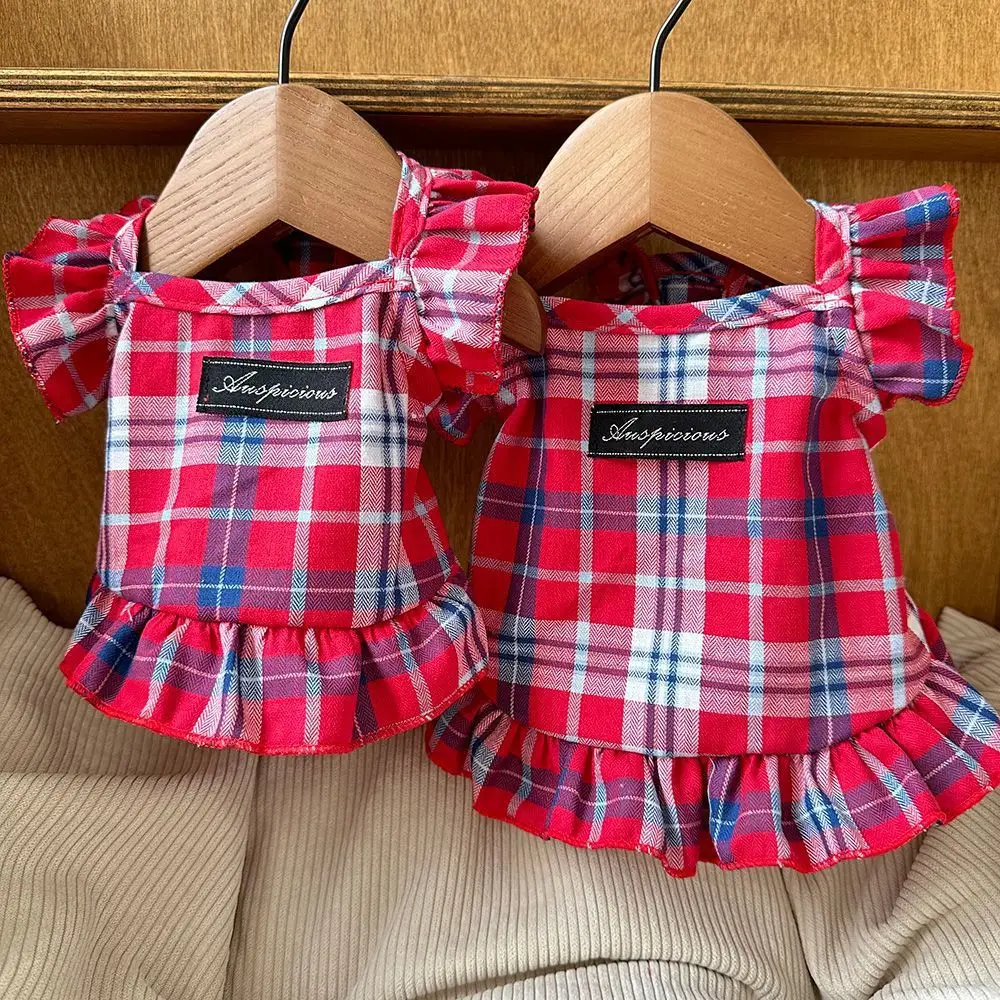 Pet Navidad a cuadros Estilo Princesa mascota verano a cuadros manga voladora Yorkshire chaleco ropa para perros pequeños ropa para cachorros