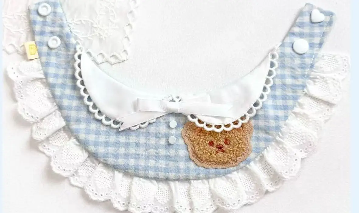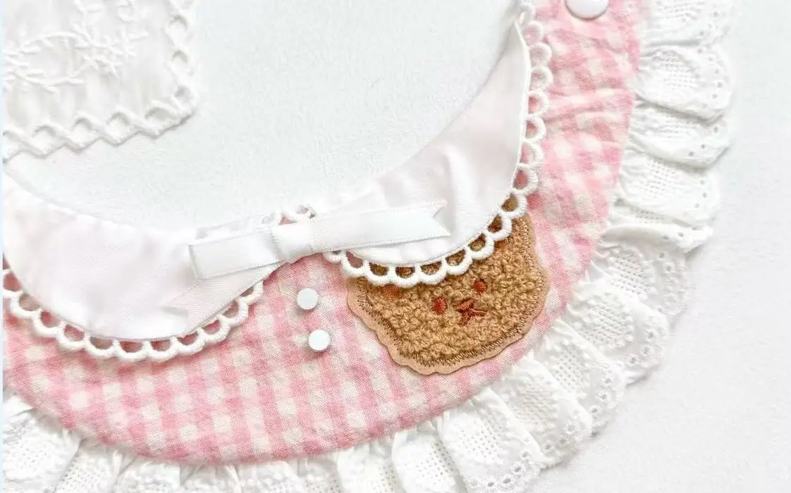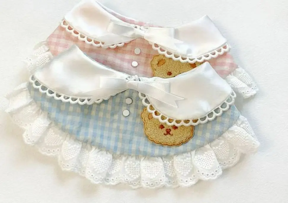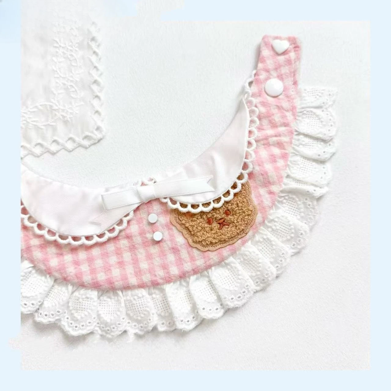 Pet Otoño Invierno a cuadros lindo babero mascota encaje oso de peluche babero toalla bufanda hecha a mano decoración Collar accesorios para perros pequeños