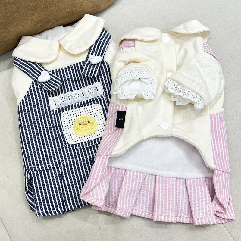 Pet Otoño/Invierno monos a rayas chaqueta Otoño/Invierno oso de peluche plisado para caminar perros ser tirados ropa para el hogar ropa para cachorros