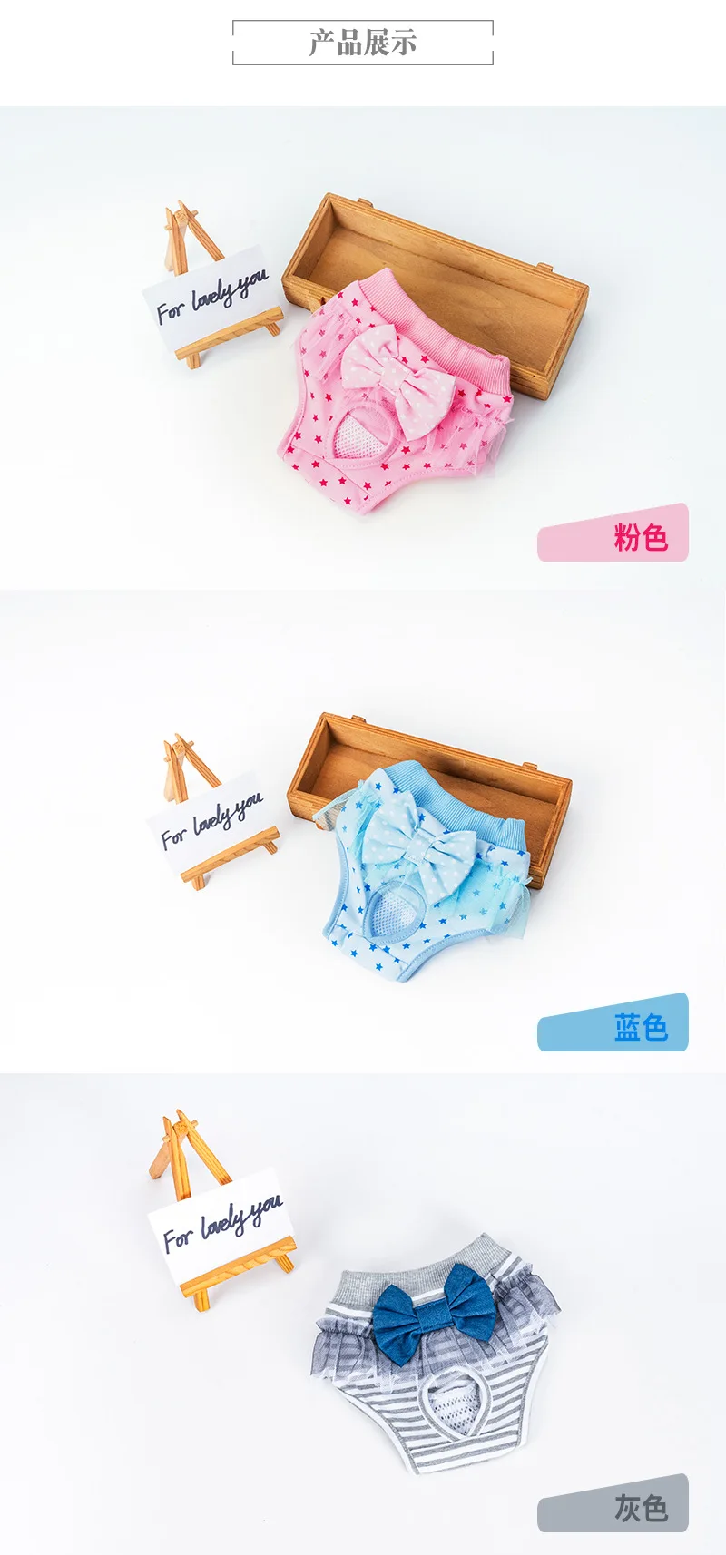 Pet Physiological Pants Reusable Cotton Puppy Bowknot Diaper Pet Sanitary Panties Female Pet Underwear Clothing Washable