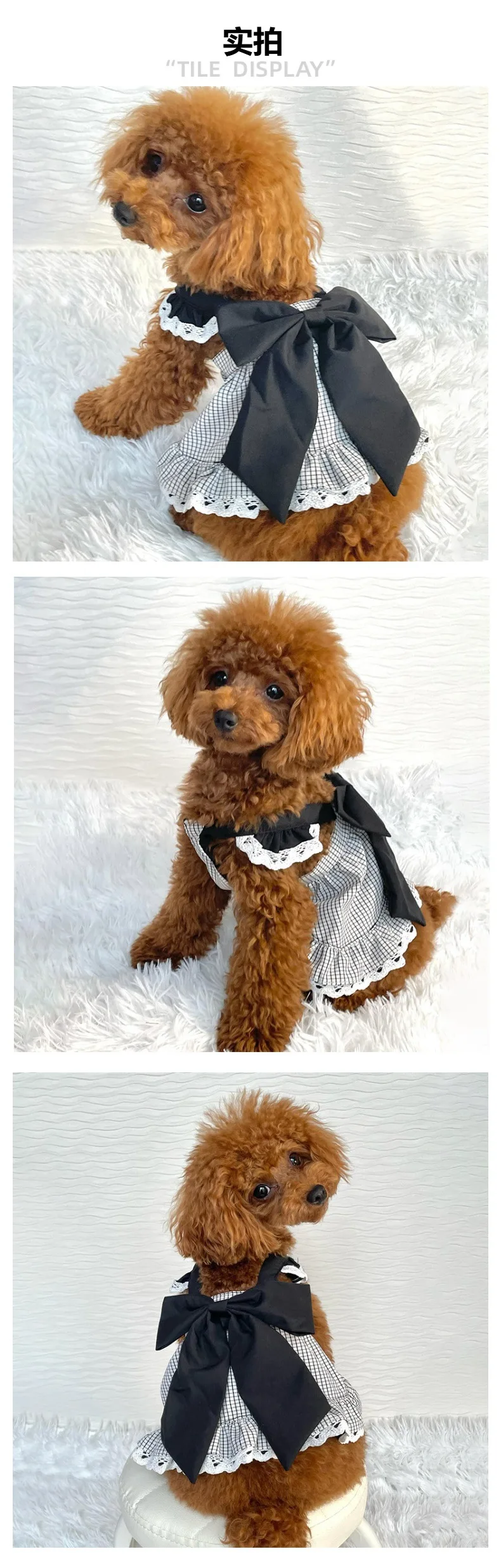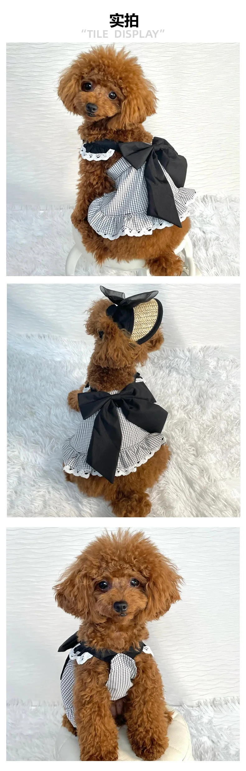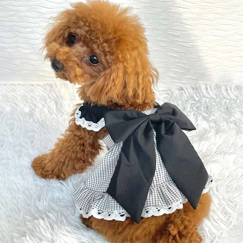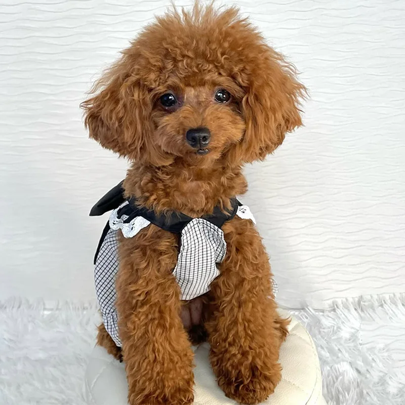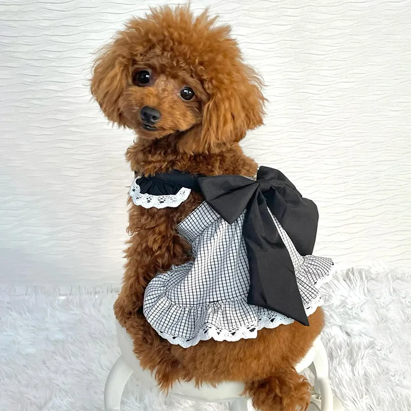 Pet Plaid Bow Dress Spring and Summer Cat Princess Plaid Lace Camisole Vest Birthday Small and Medium-sized Dog Teddy Pet