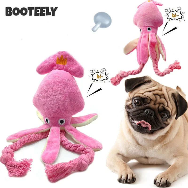Nombre del producto: Juguete de cuerda de felpa de pulpo para mascotas, juguete de sonido para perros pequeños y gatos para interacción divertida, adecuado para uso en interiores y exteriores