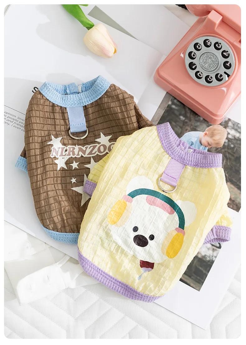 Pet primavera burbuja rejilla puede tirar Teddy perro pequeño primavera fina camiseta gato/perro ropa cachorro ropa - imagen 1