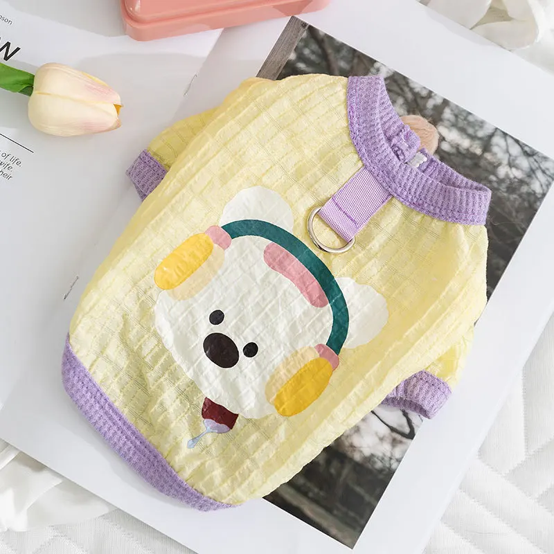 Pet primavera burbuja rejilla puede tirar Teddy perro pequeño primavera fina camiseta gato/perro ropa cachorro ropa