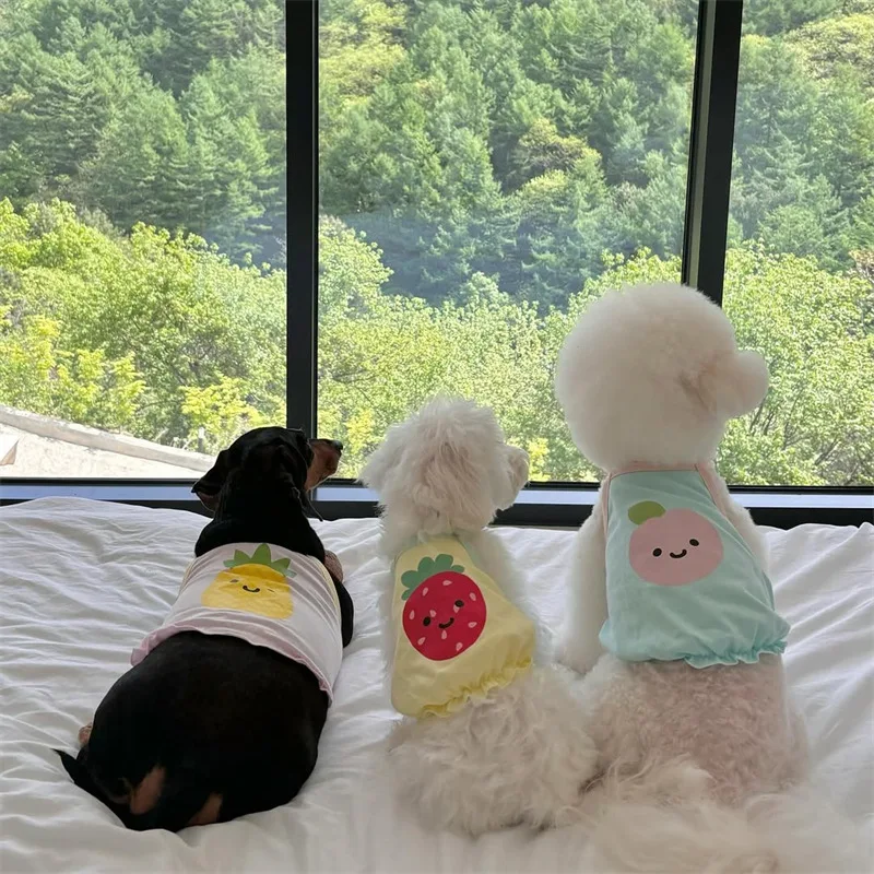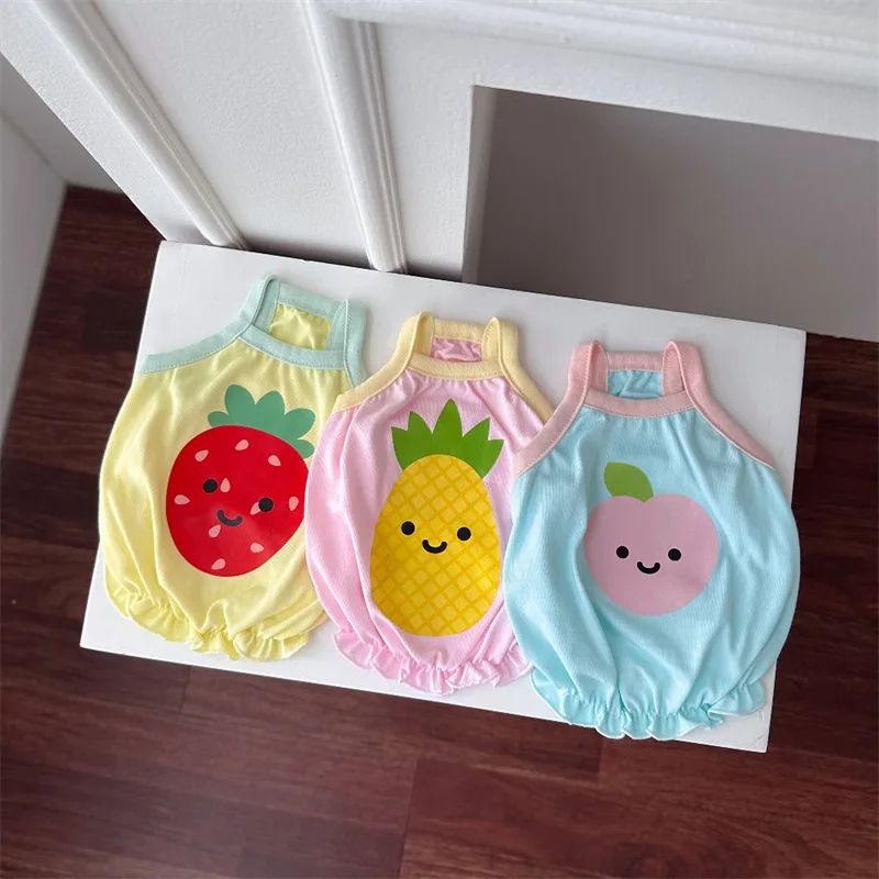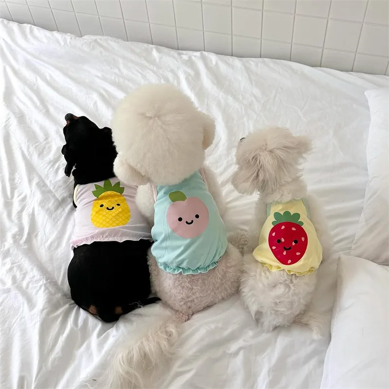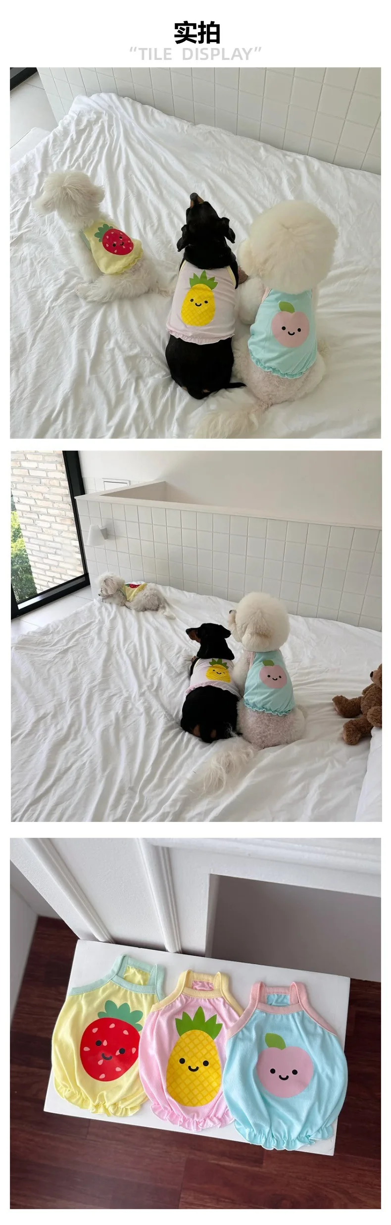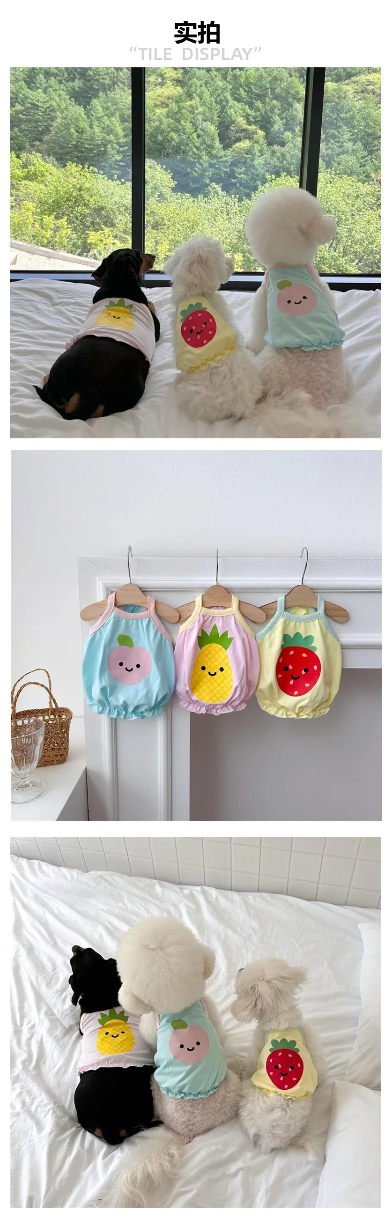 Pet primavera Color contraste fruta camiseta sin mangas vestido de tirantes perro Teddy fresa camiseta sin mangas ropa para perros pequeños