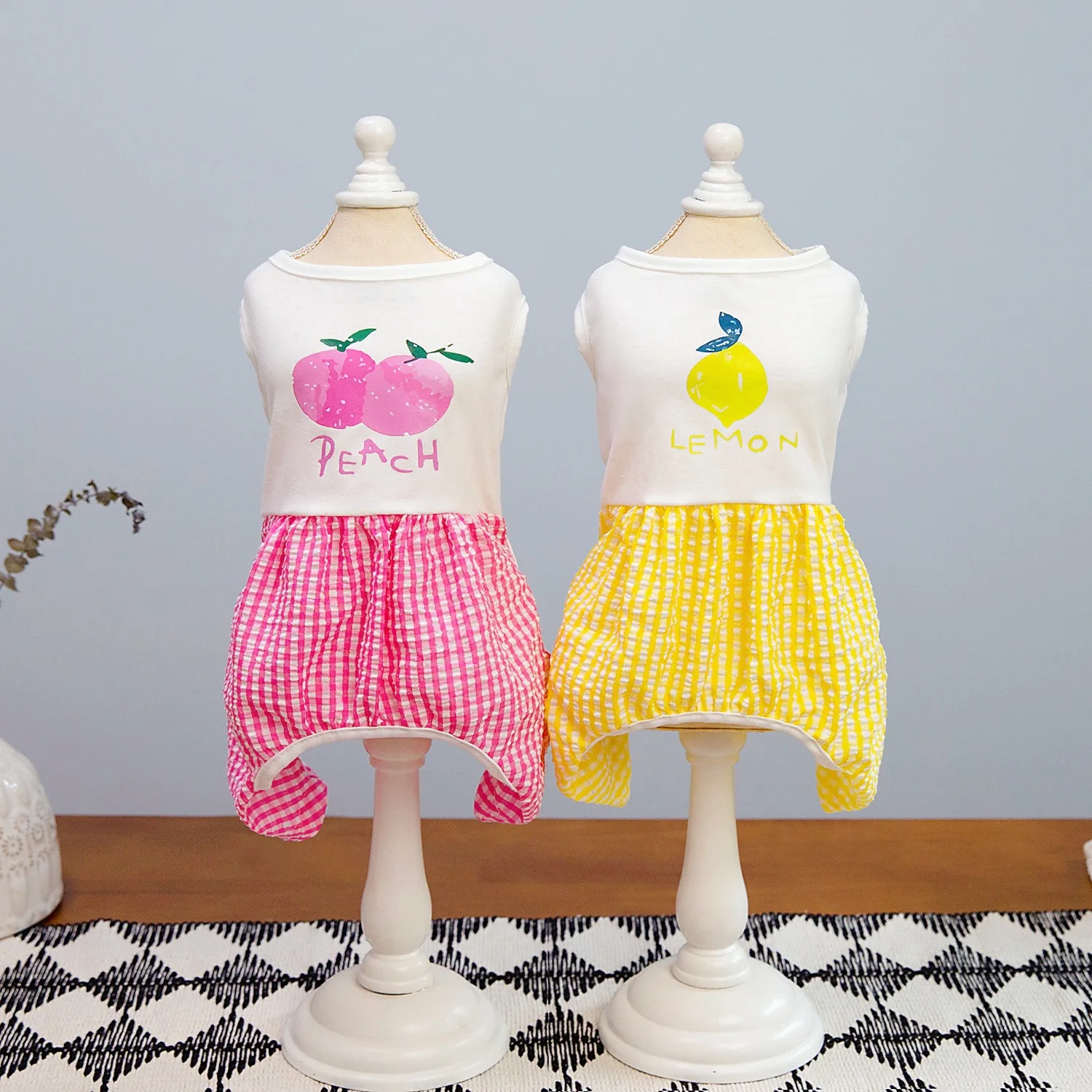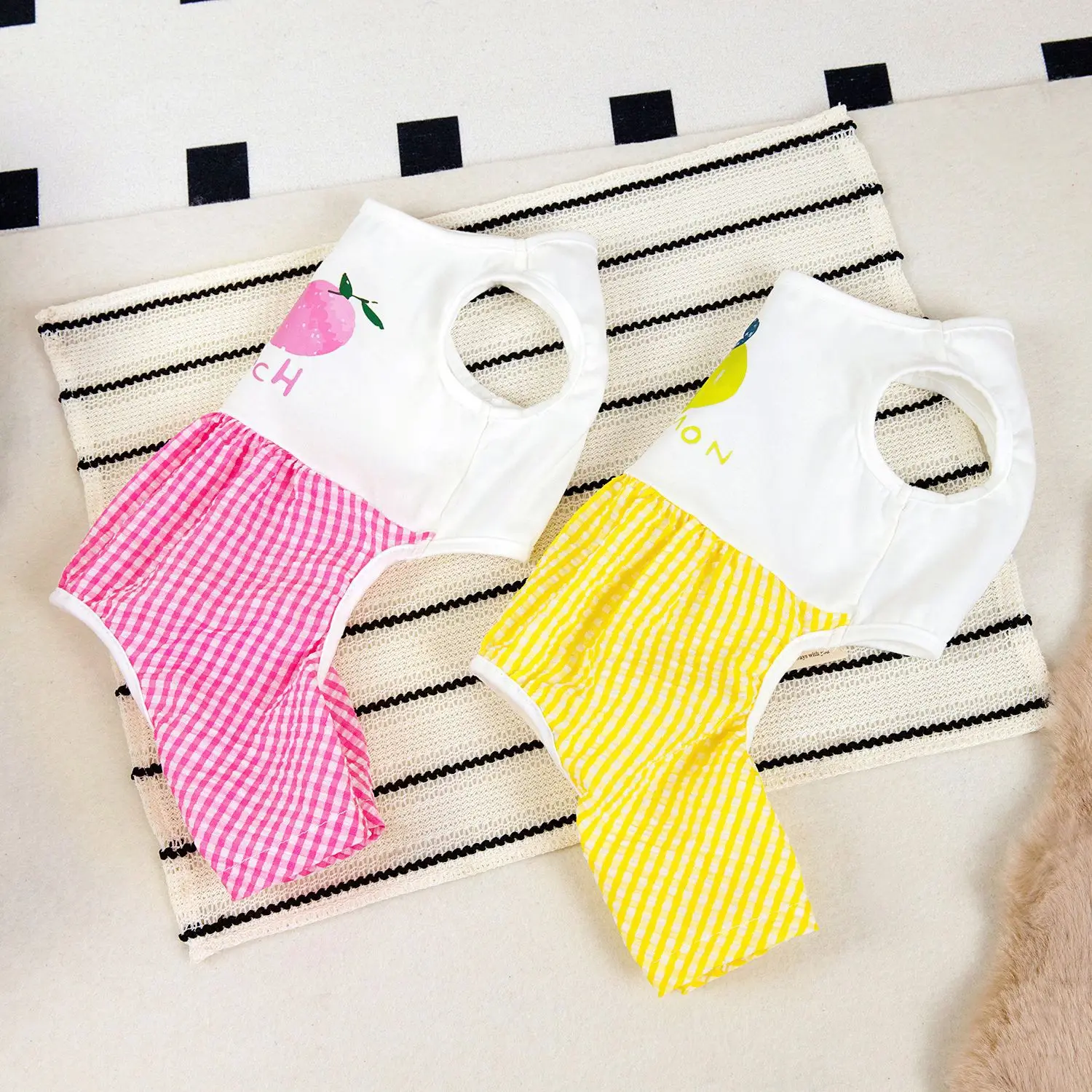 Pet Primavera Verano mono de retazos a cuadros ropa de dormir de casa de cuatro patas Teddy perro pequeño mascota verano pantalones de cuatro patas - imagen 3