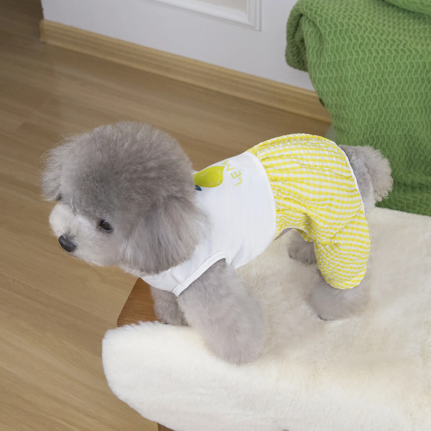 Pet Primavera Verano mono de retazos a cuadros ropa de dormir de casa de cuatro patas Teddy perro pequeño mascota verano pantalones de cuatro patas - imagen 4