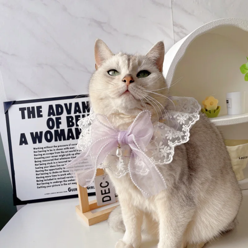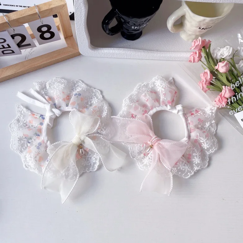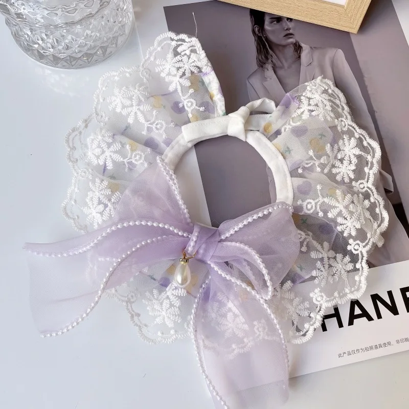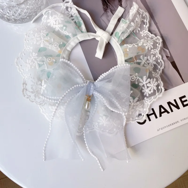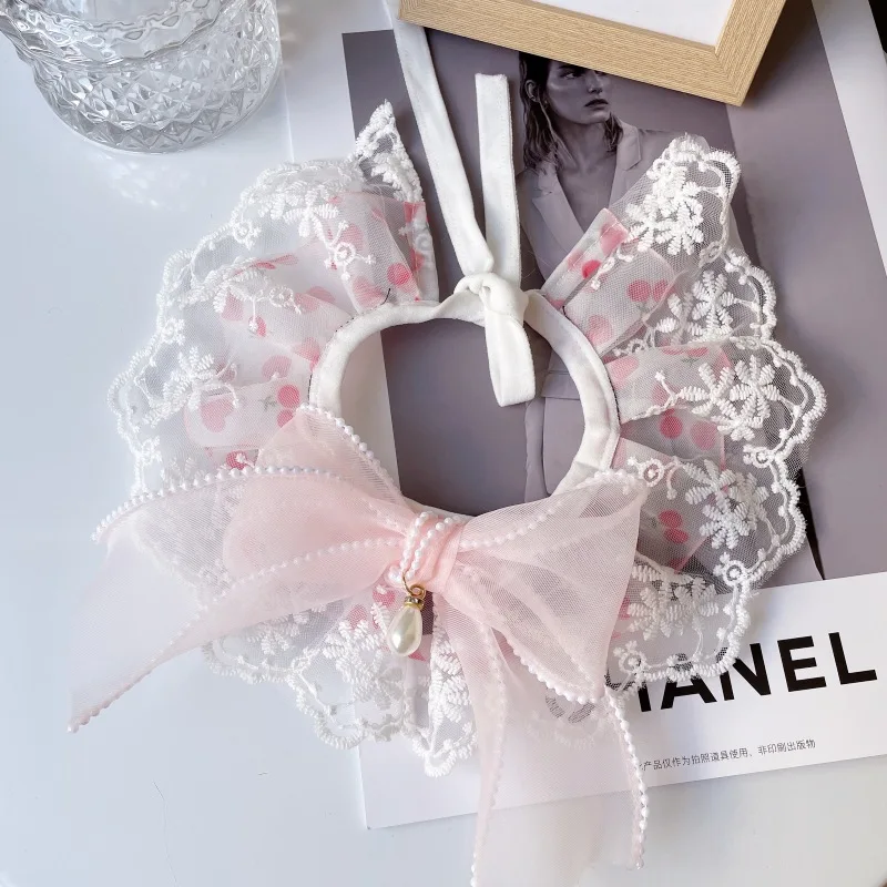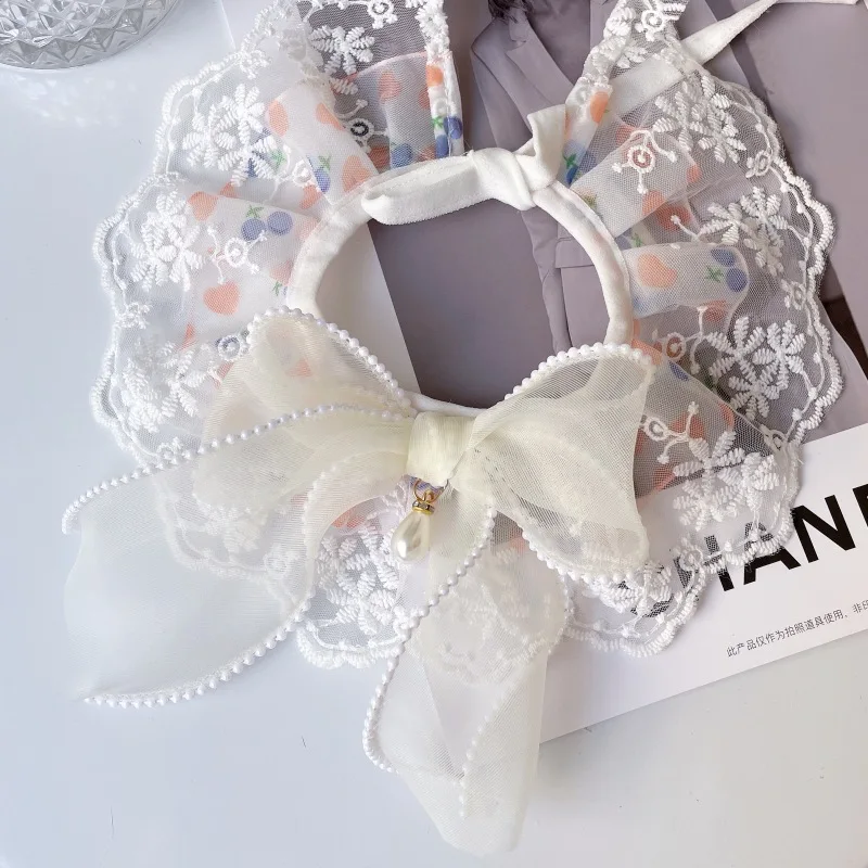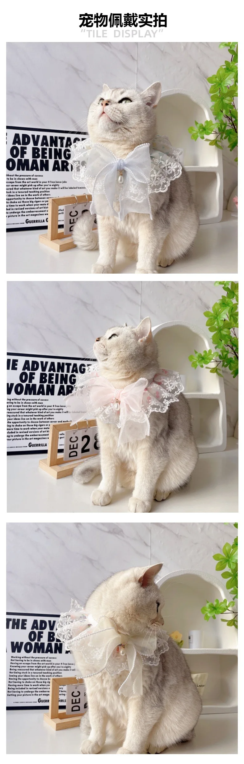Pet primavera y verano pequeño lazo Floral babero para mascotas estilo de hadas encaje gato cuello bucle perro verano transpirable babero toalla