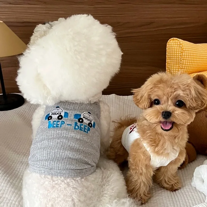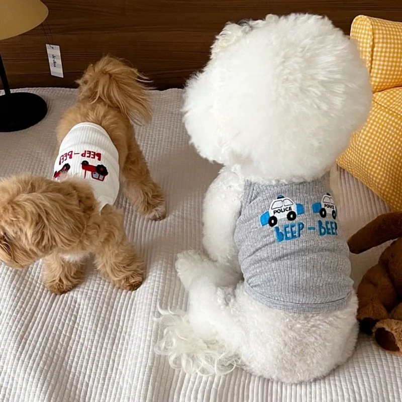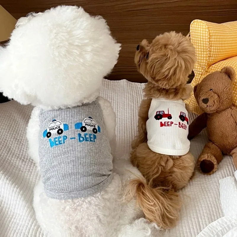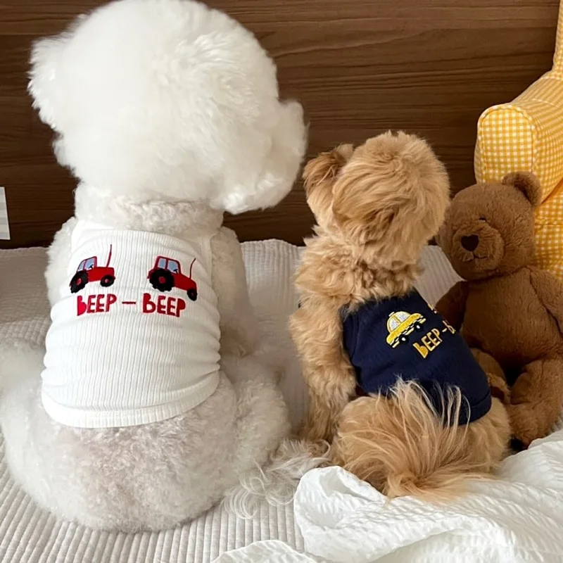 Pet Primavera/Verano Top con tirantes bordados gato Teddy cachorro pequeño primavera/verano ropa fina para cachorros para perros pequeños