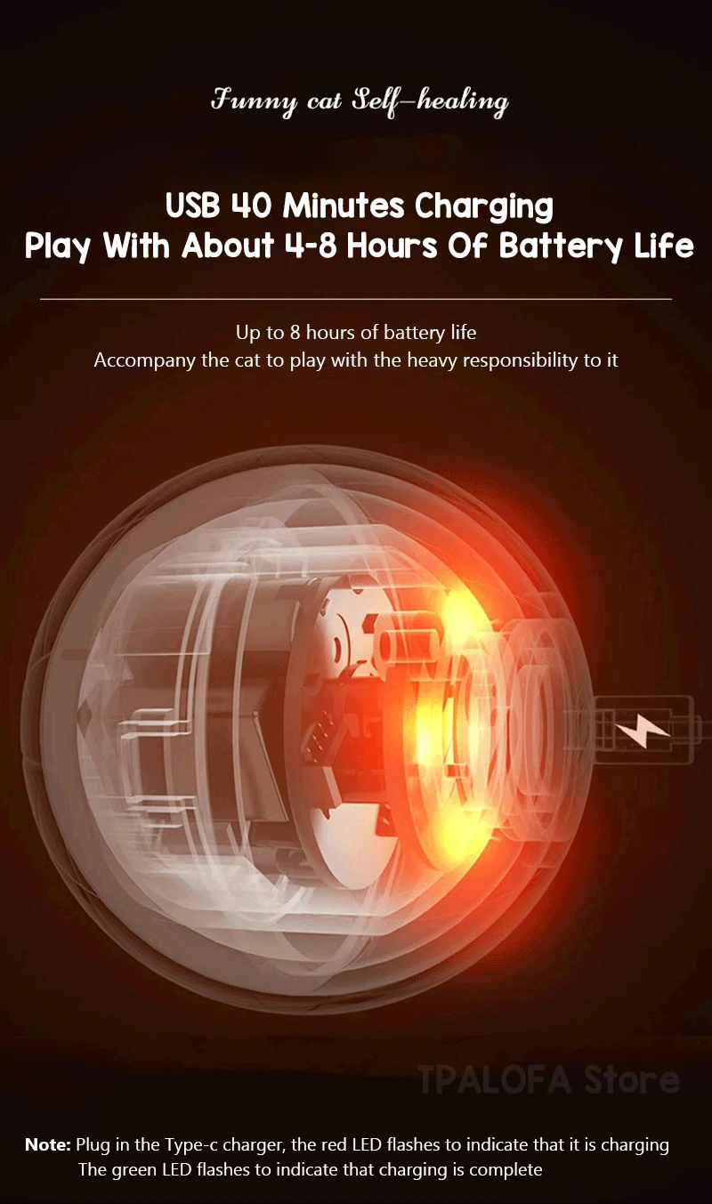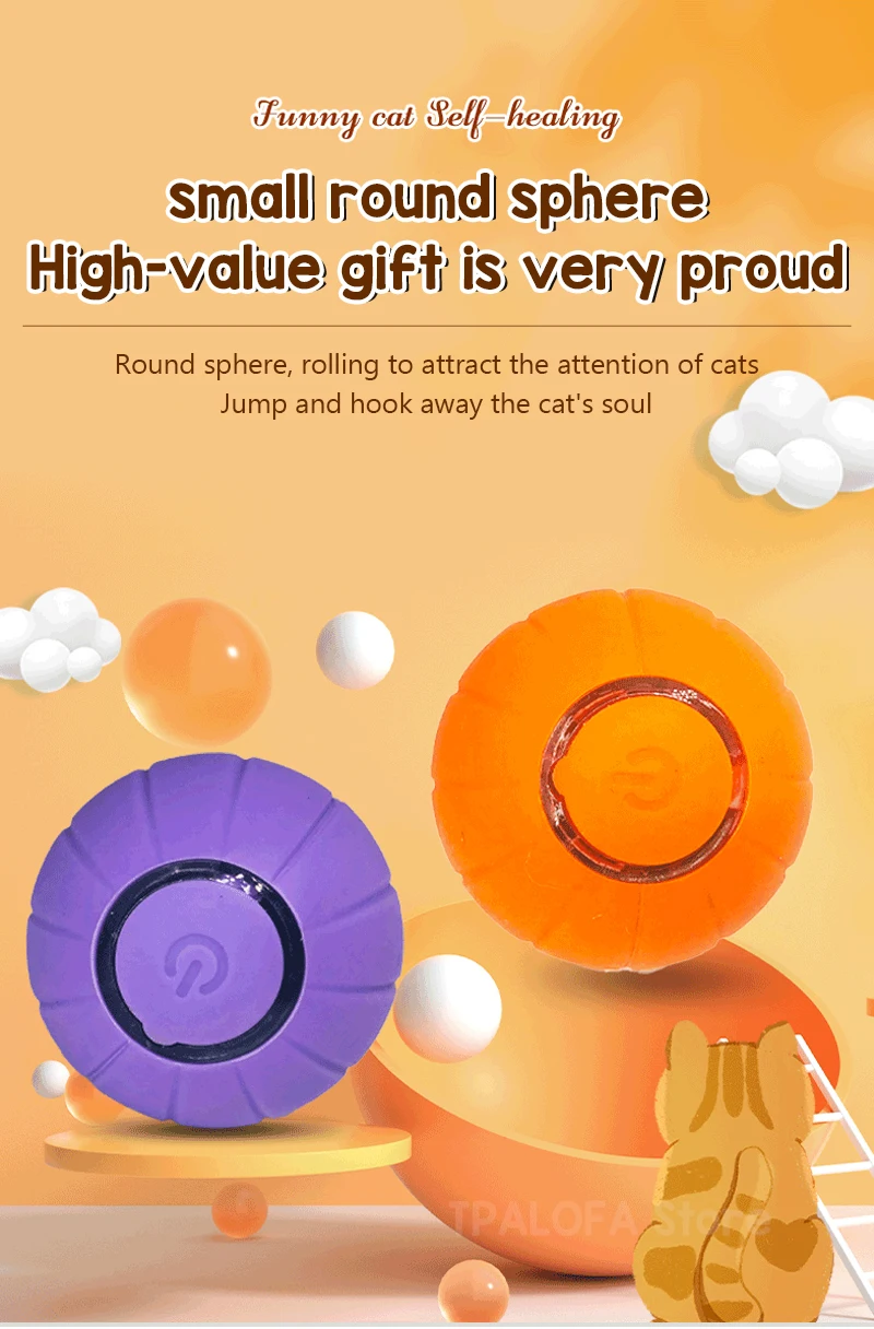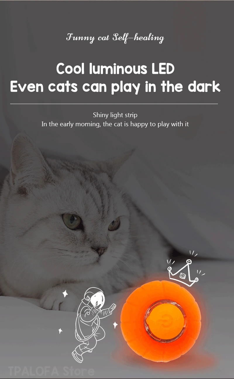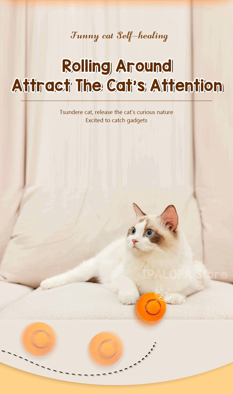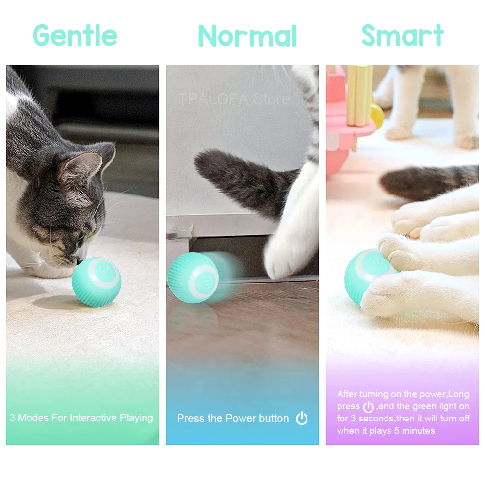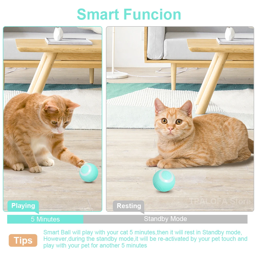 Juguetes interactivos para gatos, pelota para estimular la caza, gatito, divertido juguete de rodillo, bola eléctrica inteligente giratoria de 360 grados, recargable por USBMaterial:ABS/silicona