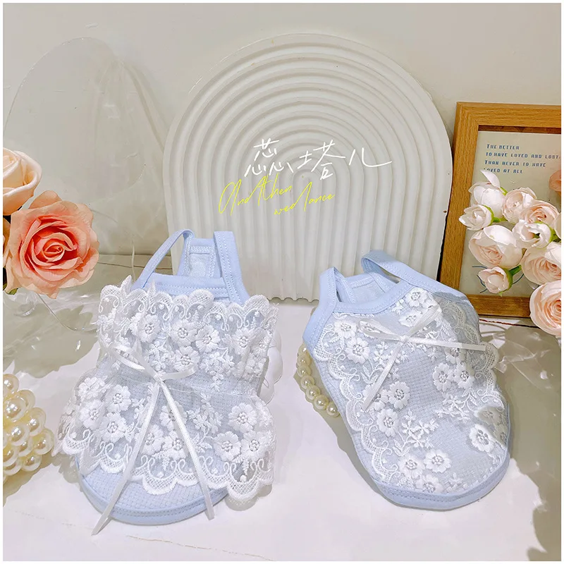Pet Spring Camisole Lace Dress Blue Cute Vest Princess Dress Dog Dresses for Small Dogs Puppy Clothes