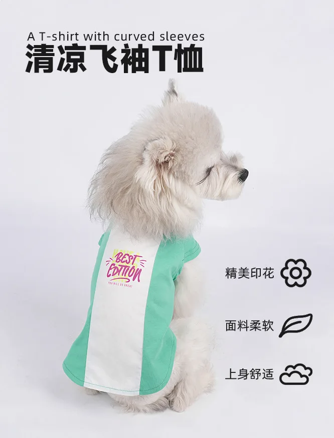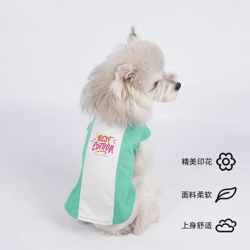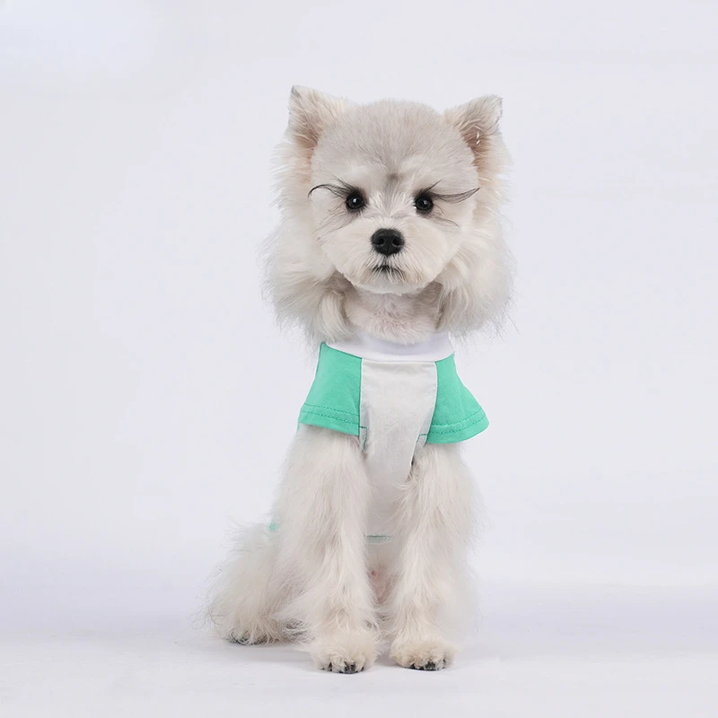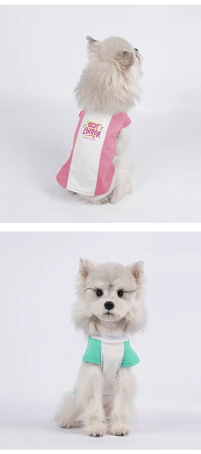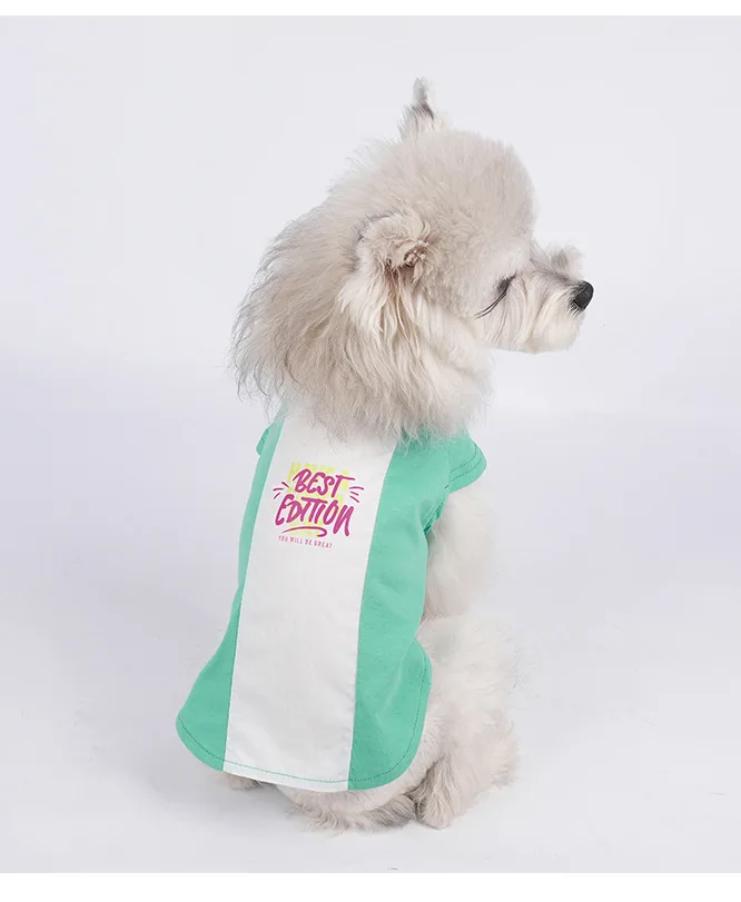 Ropa para cachorros Schnauzer Bibi Bear, Base de mangas pequeñas con estampado de bloques de Color de primavera para mascotas, ligera y transpirable
