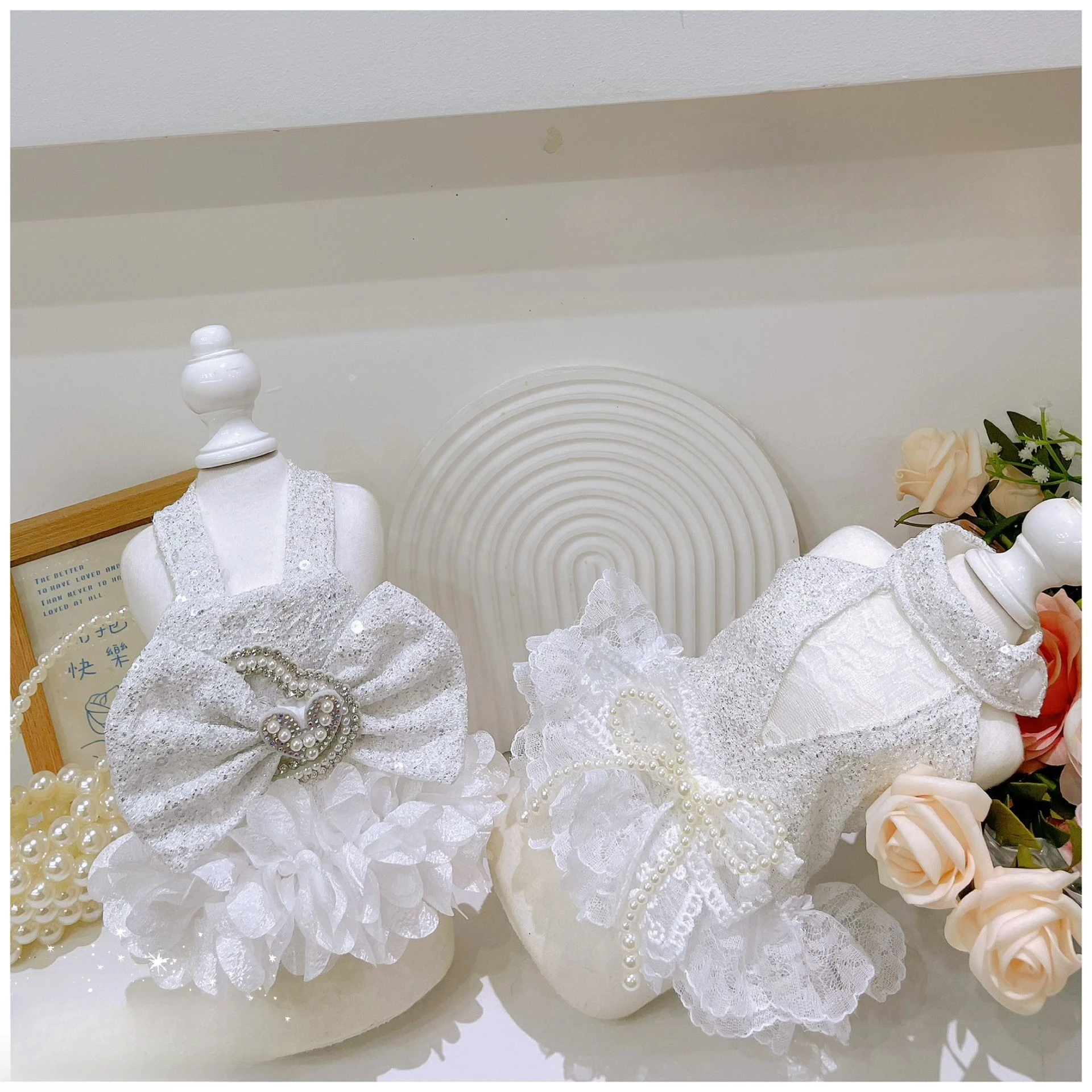 Pet Spring Princess Strap Bow Cake Skirt Yorkshire Strap Skirt Elastic Dress Glitter Dress Dog Dresses for Small Dogs