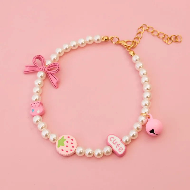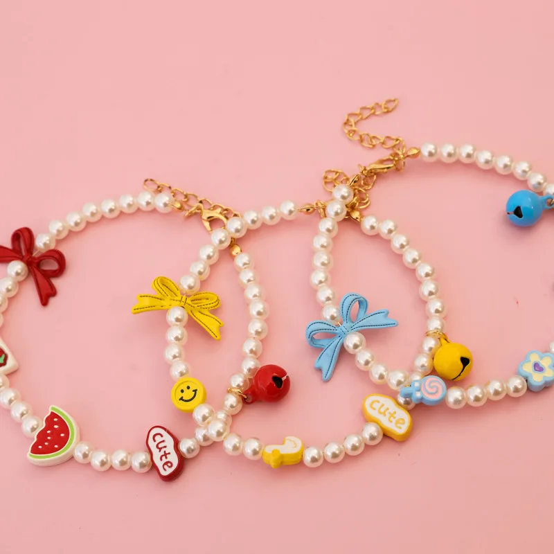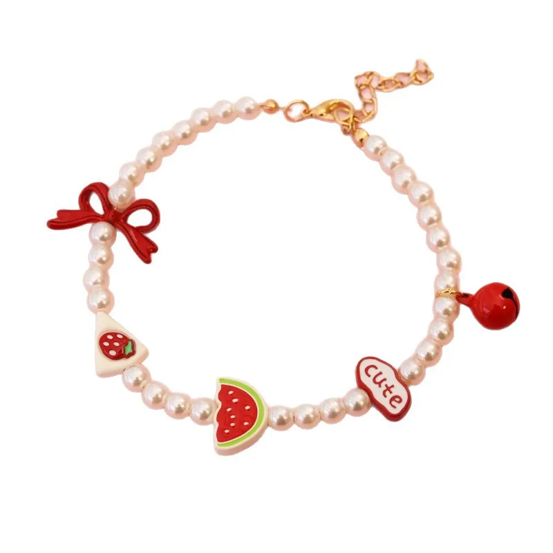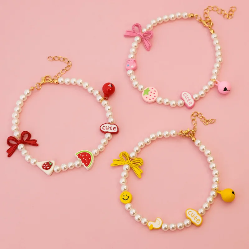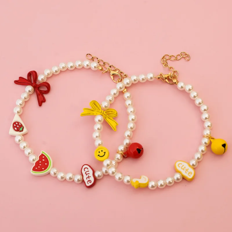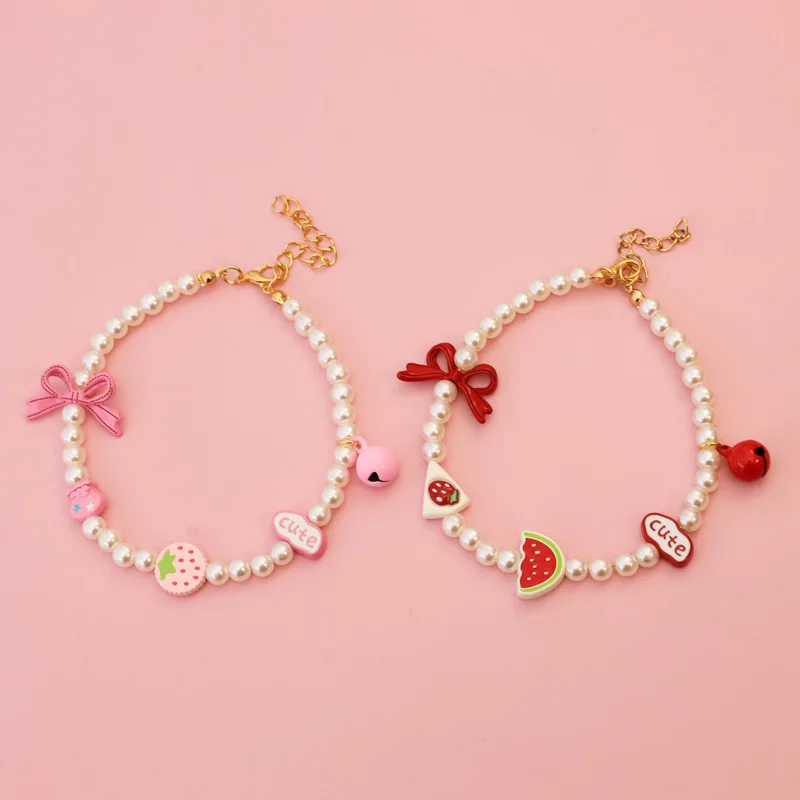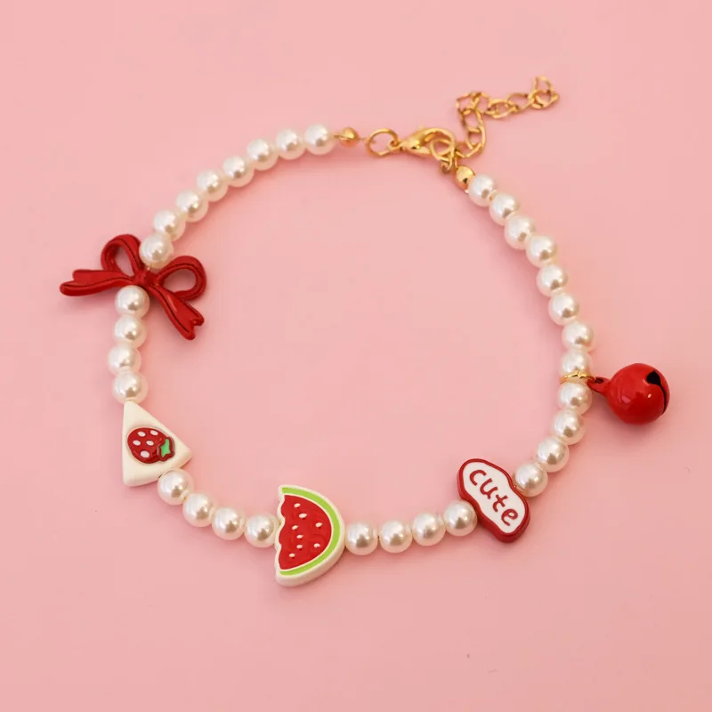 Pet Spring/Summer Pearl Necklace Cat Collar Cute Decorative Bell Autumn/Winter Watermelon Strawberry Bow Pet Accessories