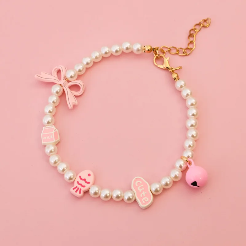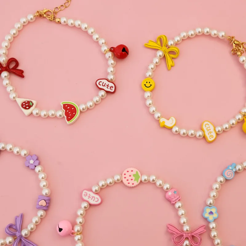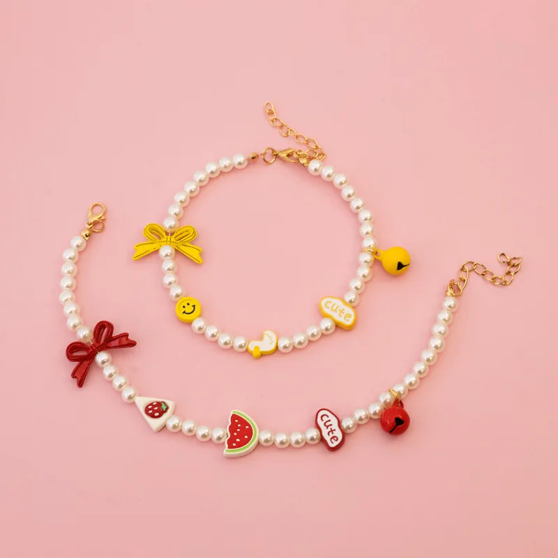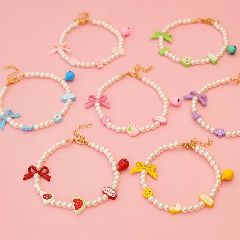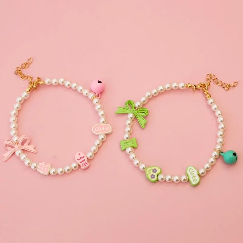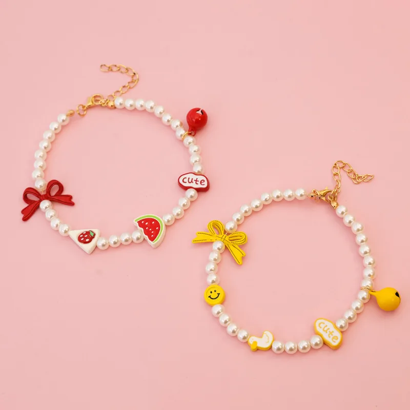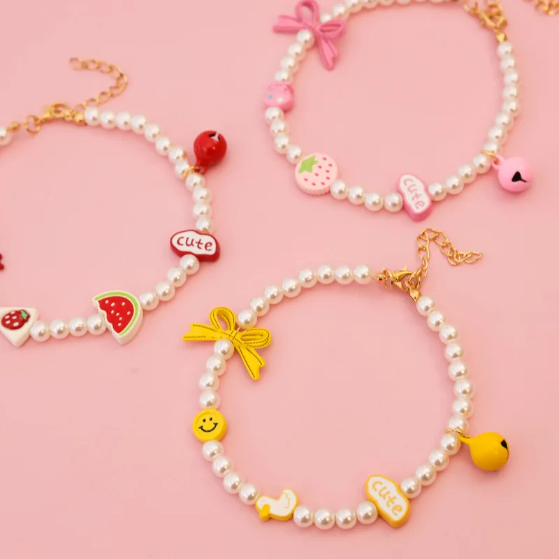 Pet Spring/Summer Pearl Necklace Cat Collar Cute Decorative Bell Autumn/Winter Watermelon Strawberry Bow Pet Accessories