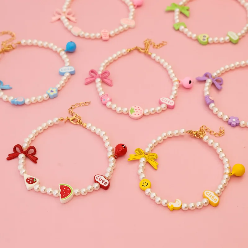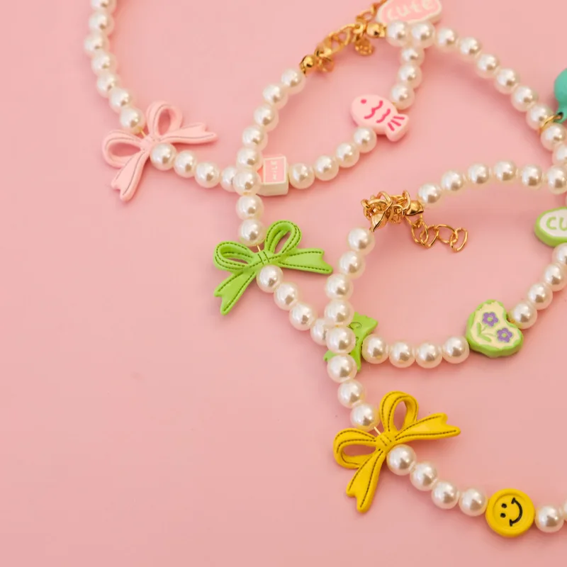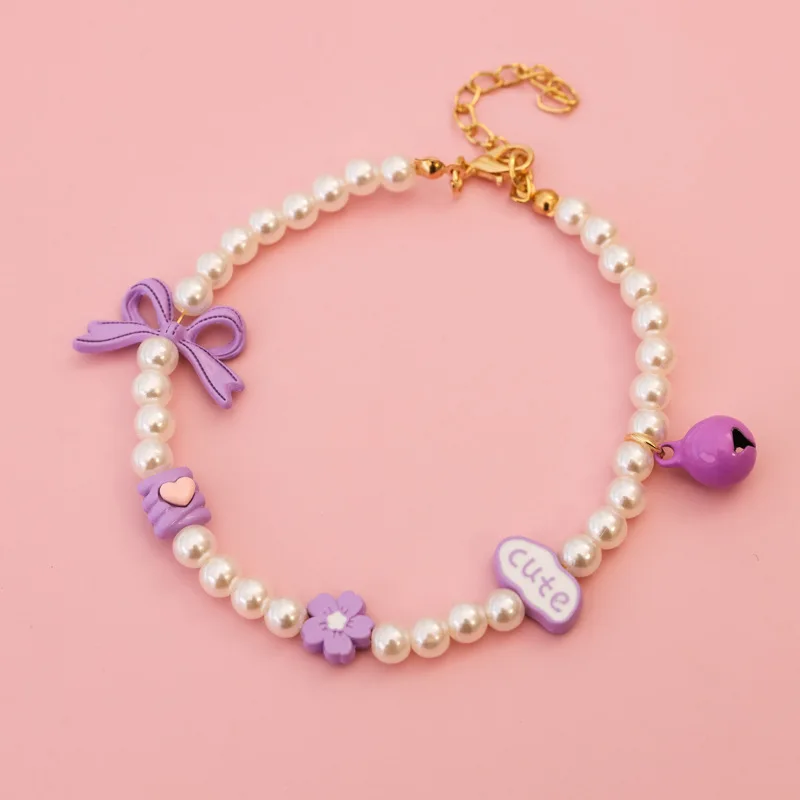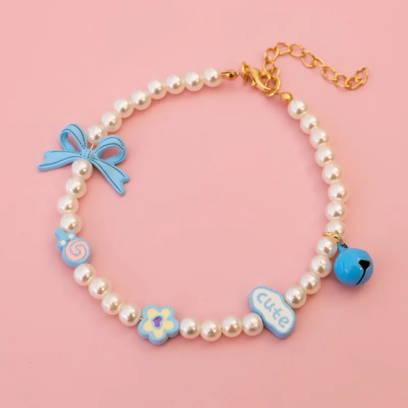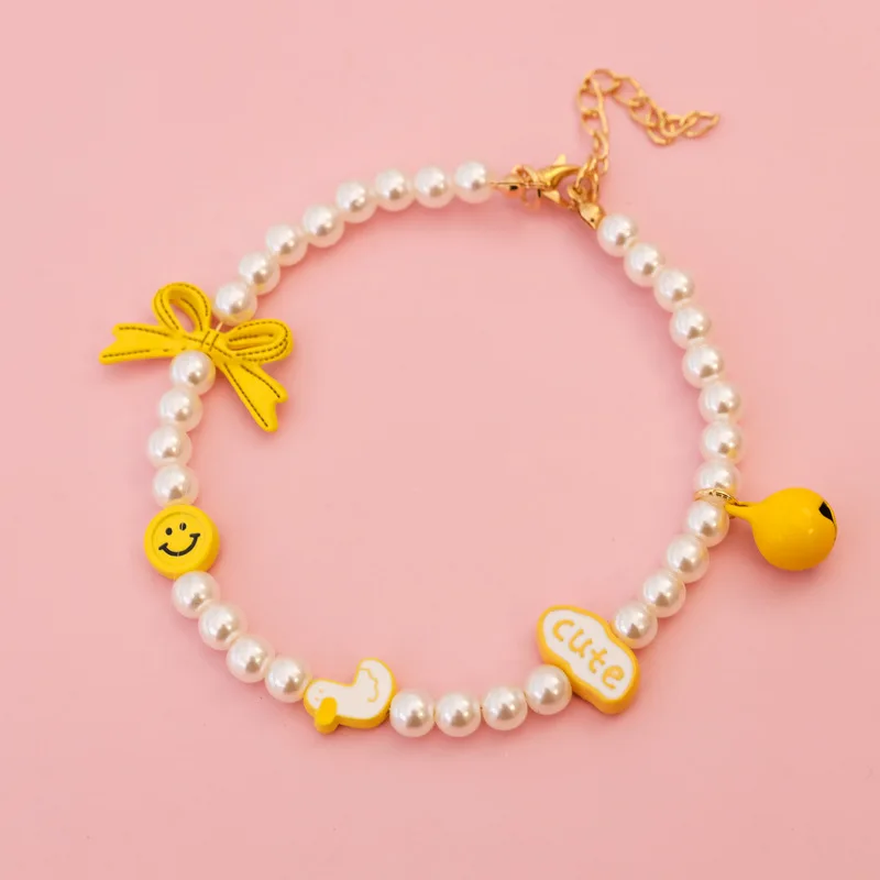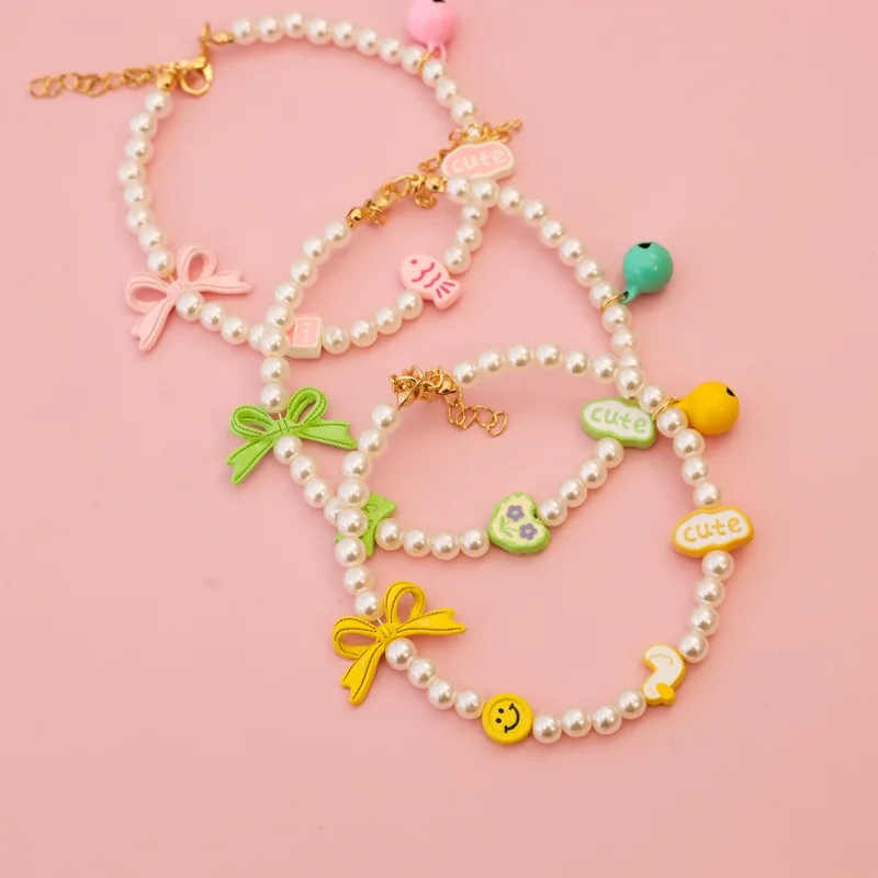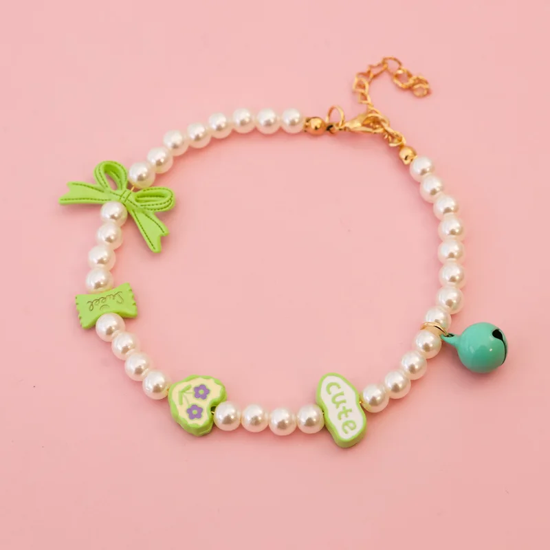 Pet Spring/Summer Pearl Necklace Cat Collar Cute Decorative Bell Autumn/Winter Watermelon Strawberry Bow Pet Accessories