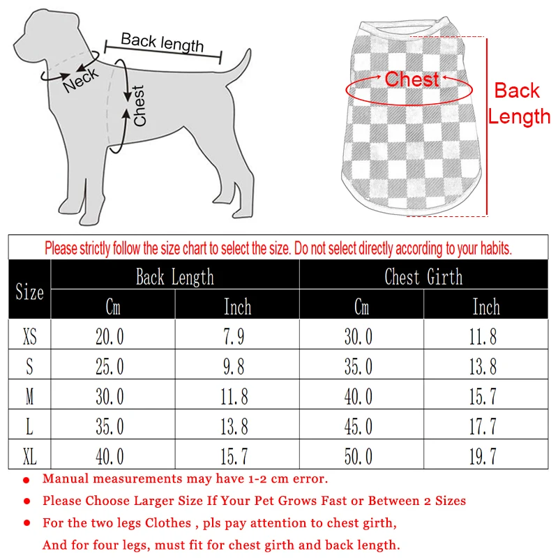 Para la ropa de dos piernas, preste atención a la circunferencia del pecho, y para las cuatro piernas, debe adaptarse a la circunferencia del pecho y la longitud de la espalda.