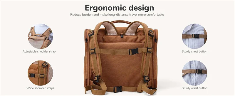 Comodidad y soporte: para mochileros, el diseño ergonómico y las correas acolchadas ajustables distribuyen uniformemente el peso, asegurando un transporte cómodo incluso durante viajes largos.
