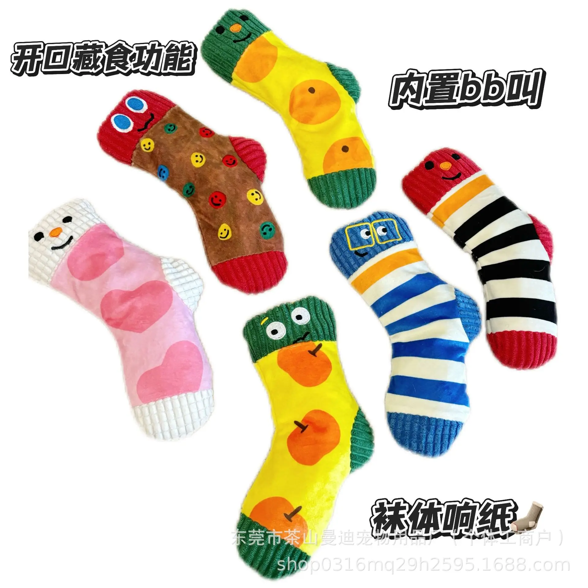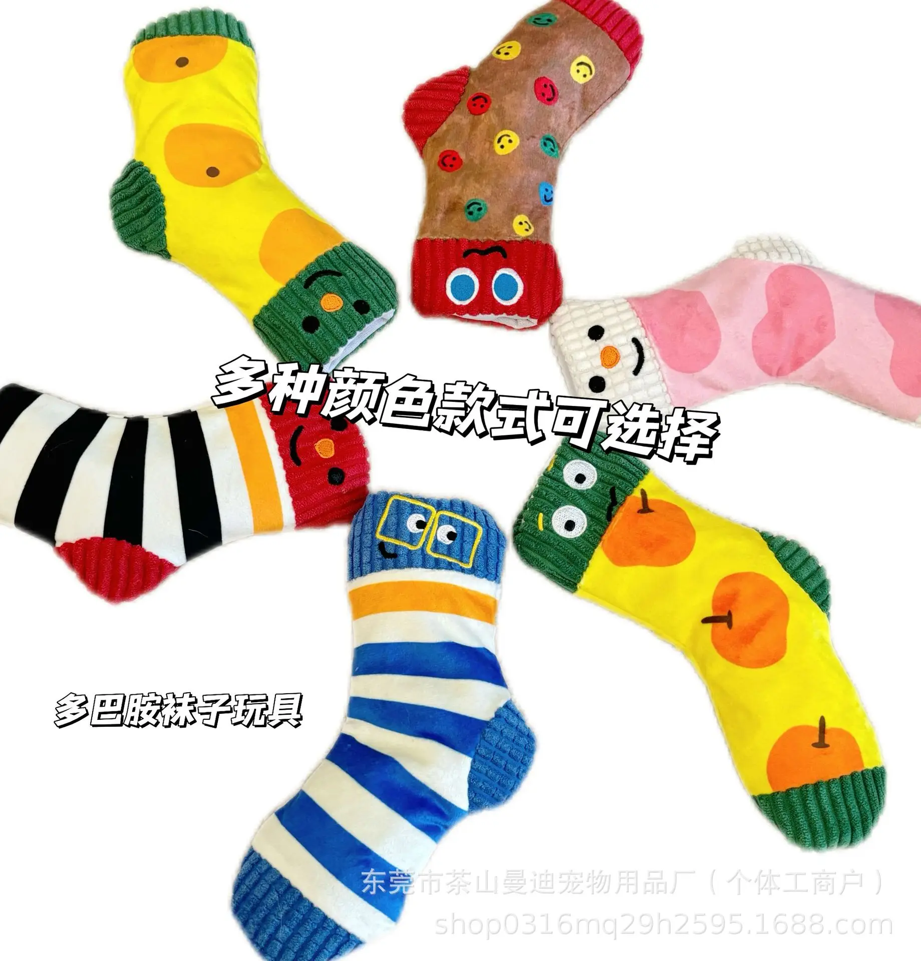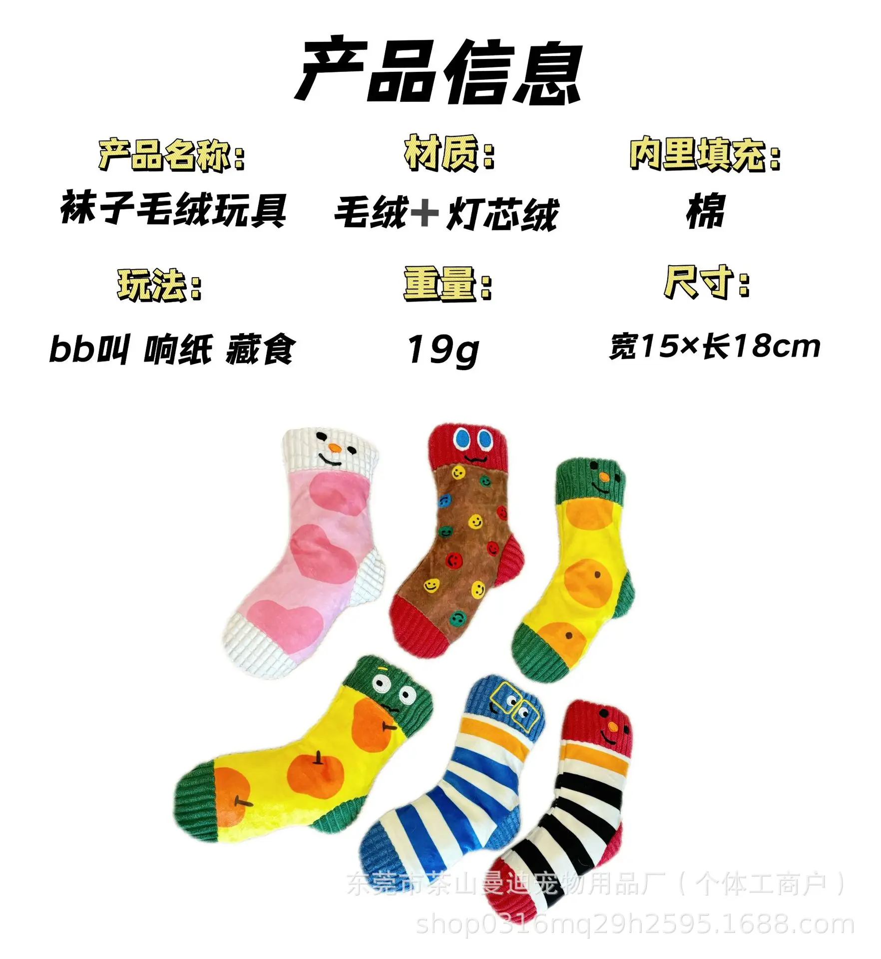 Pet Toys Teeth Grinding and Cleaning Cartoon Socks Plush Toys Cute Sound Making Toy Cat Dog Dog Accessories for Small Dogs