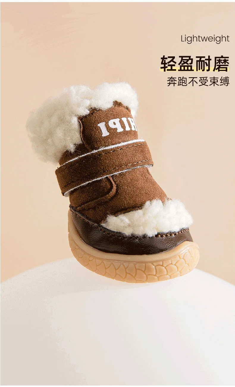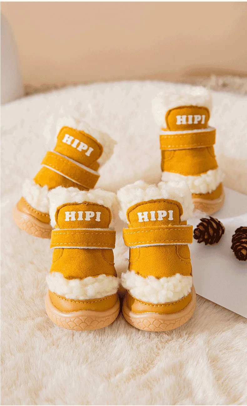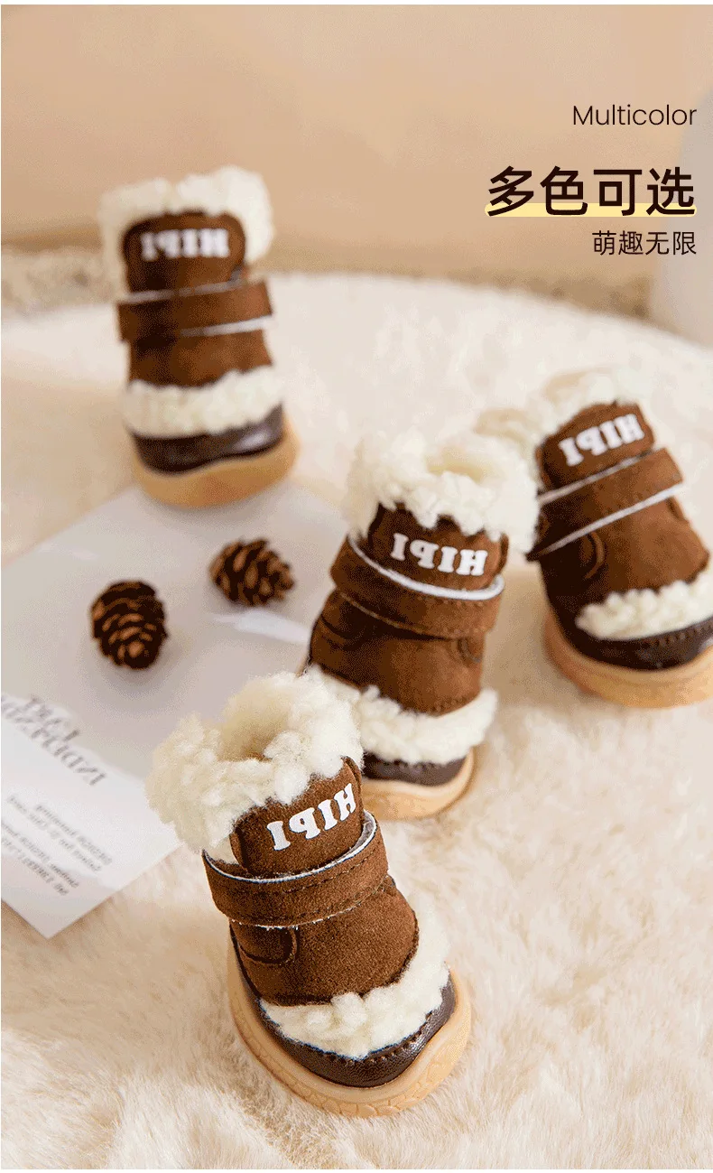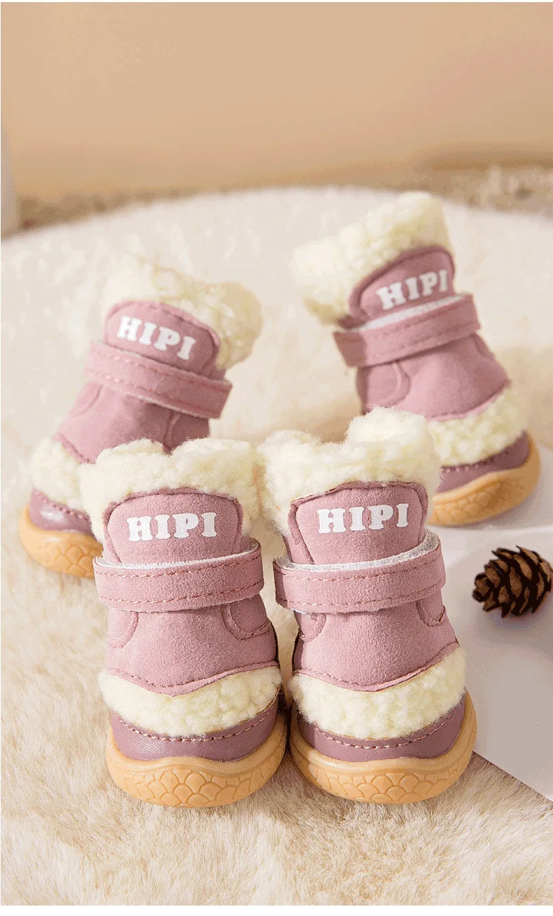 Pet Winter Lamb Wool Dog Out 4 Packs Cotton Shoes Warm Small Dog Foot Cover Shoe Cover Non-slip Shoes