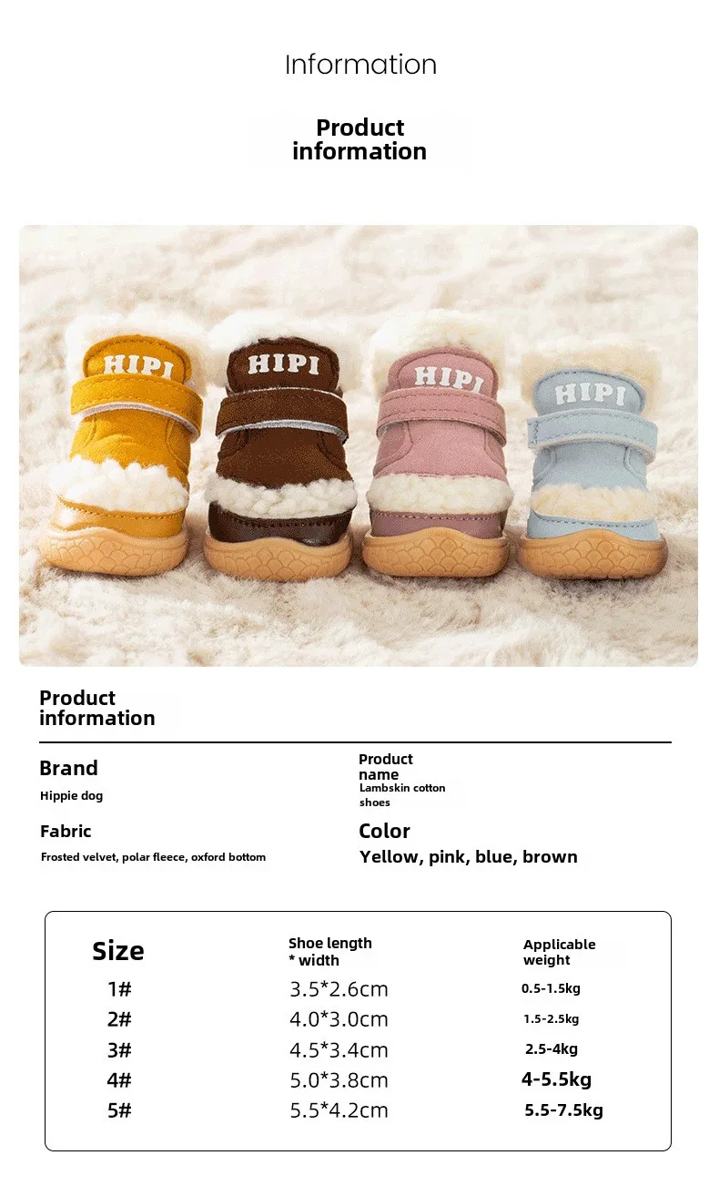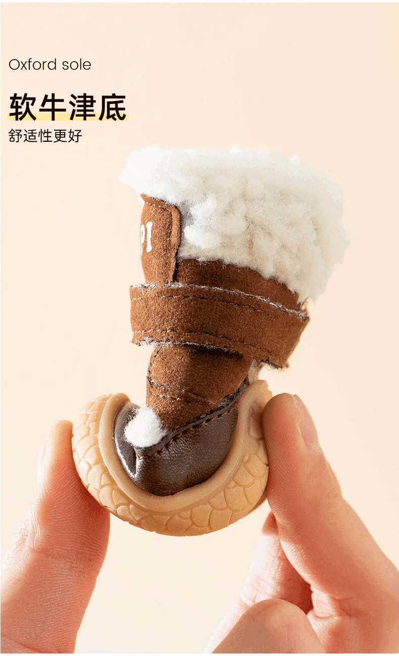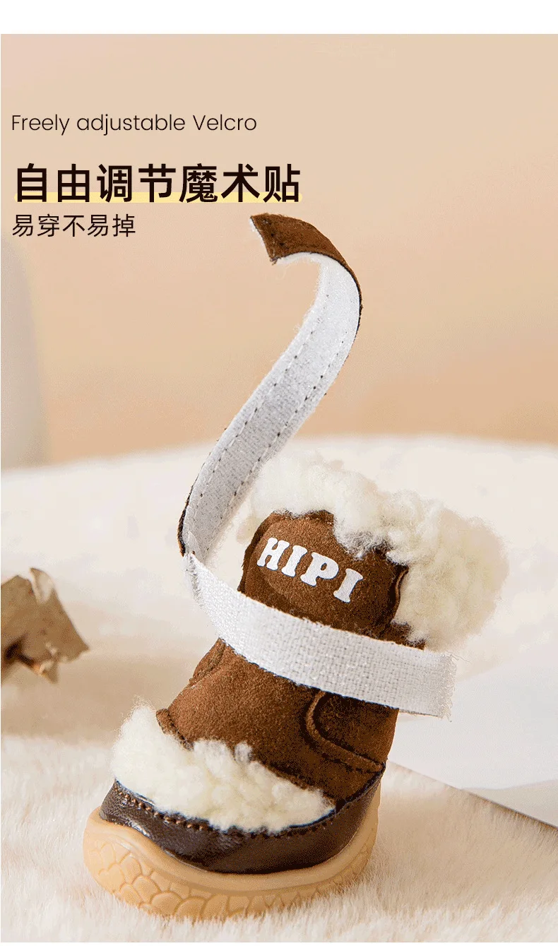 Pet Winter Lamb Wool Dog Out 4 Packs Cotton Shoes Warm Small Dog Foot Cover Shoe Cover Non-slip Shoes