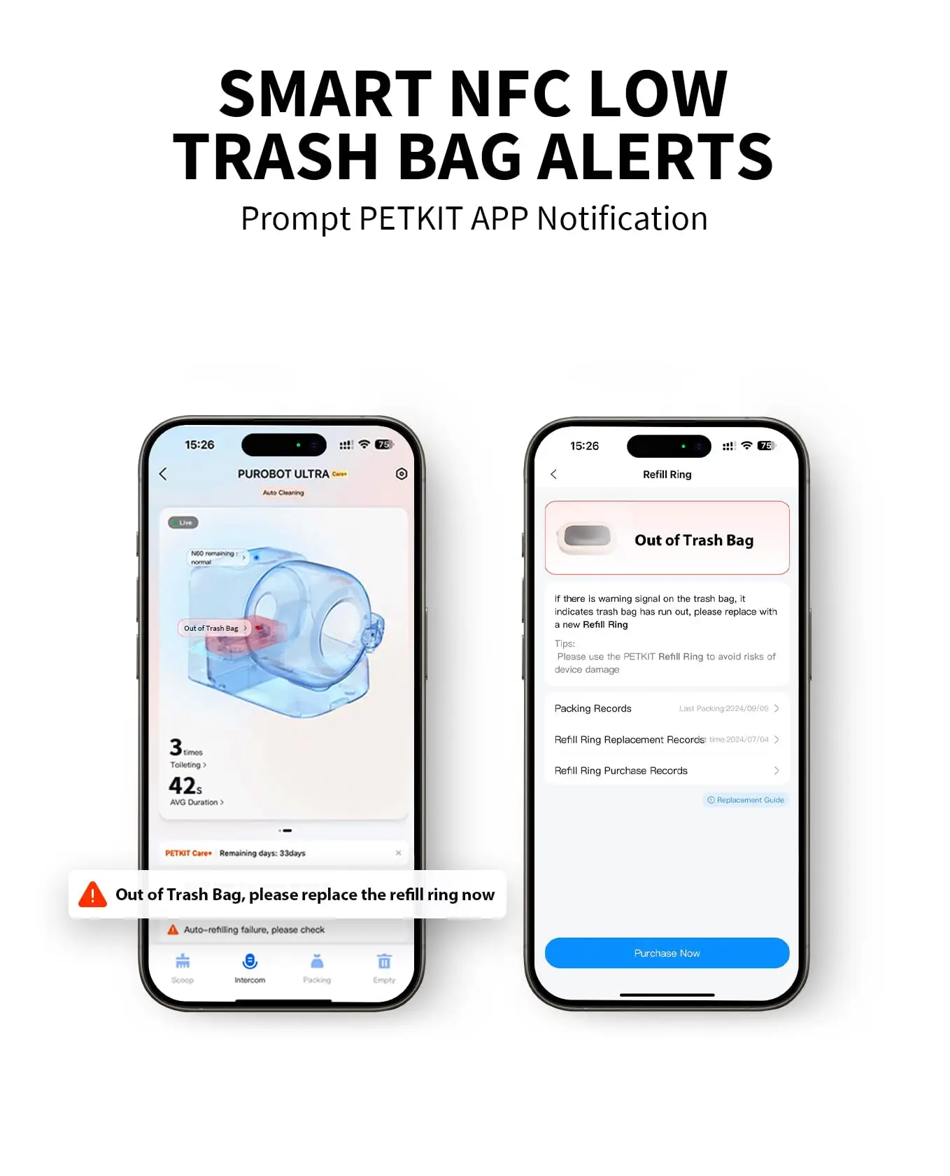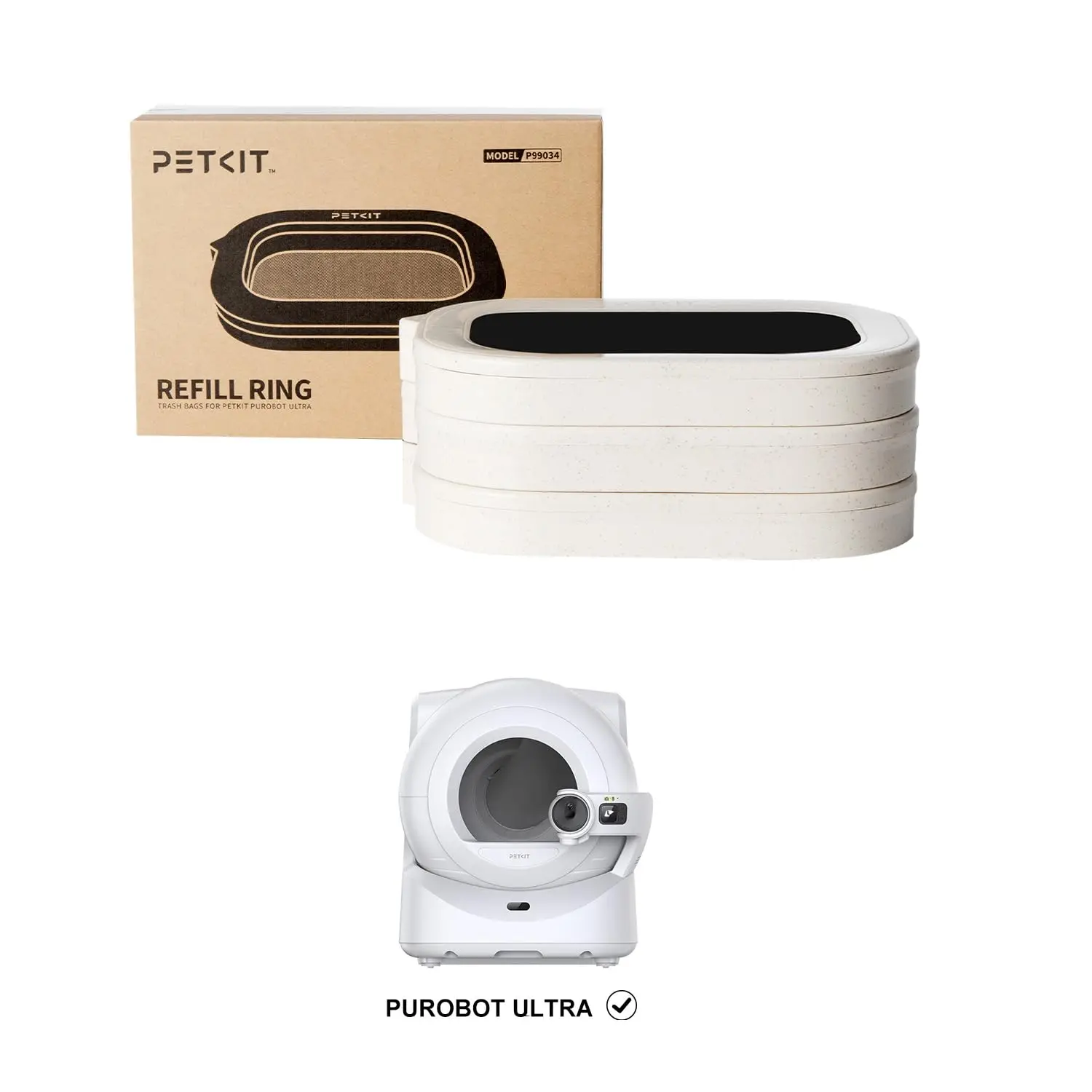 Anillo de recarga: Incluye 3 piezas, exclusiva para la caja de arena para gatos PETKIT Purobot Ultra autolimpiante y con embalaje automático.
